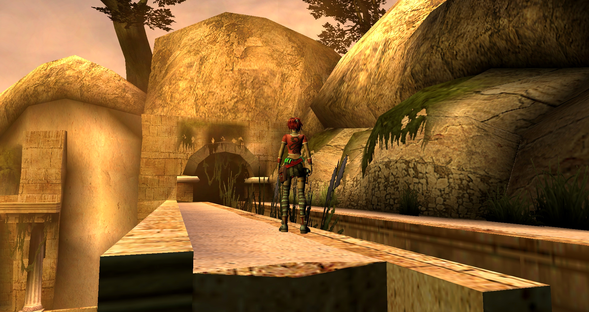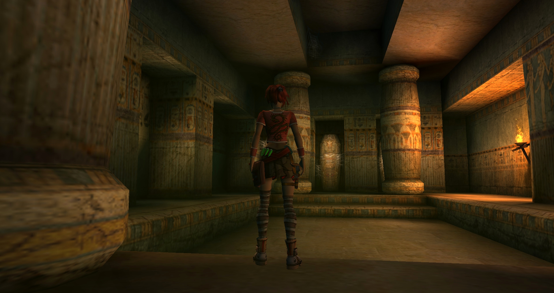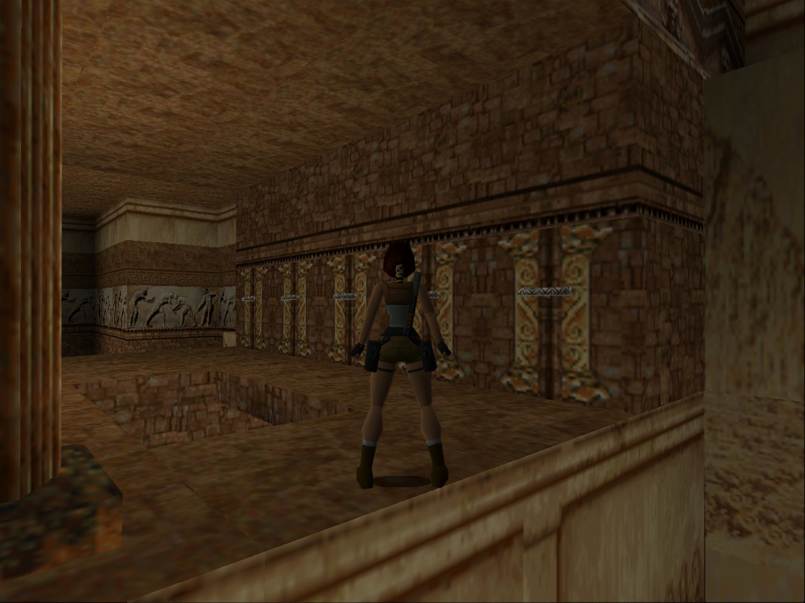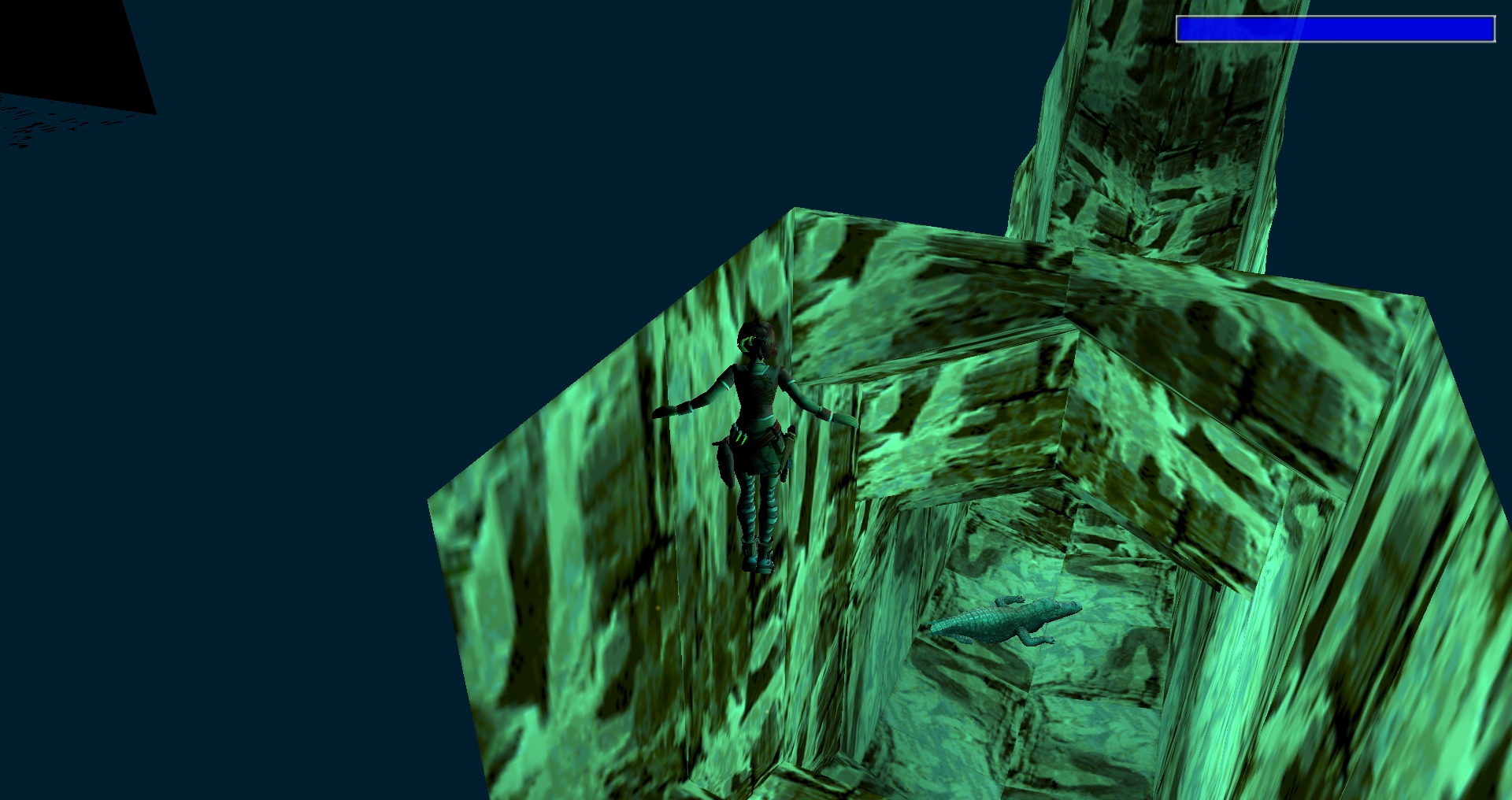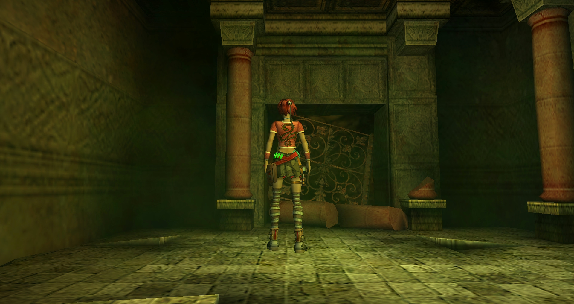 Вообще, уровень вобрал в себя две эпохи, отчего начинаешь игру с переделанной локации, а где-то к середине попадаешь в привычный 1996 год. Разумеется, до финала тут как до луны, враги стоят столбом, белые все, кроме крокодилов, которые, как оказалось, всё-таки могут плавать (хотя это может быть реставрацией фанатов, ибо уровень не запускался без вмешательства). Двери к испытаниям стоят без текстур, но коды к ним те же самые, что в оригинале, но зайдя к ним – ничего не работает. Колона не обрушает локацию, а огня и вовсе нет, тем не менее я не жалуюсь на такую недоработку, всё-таки огненное испытание поджигало не только Лару...