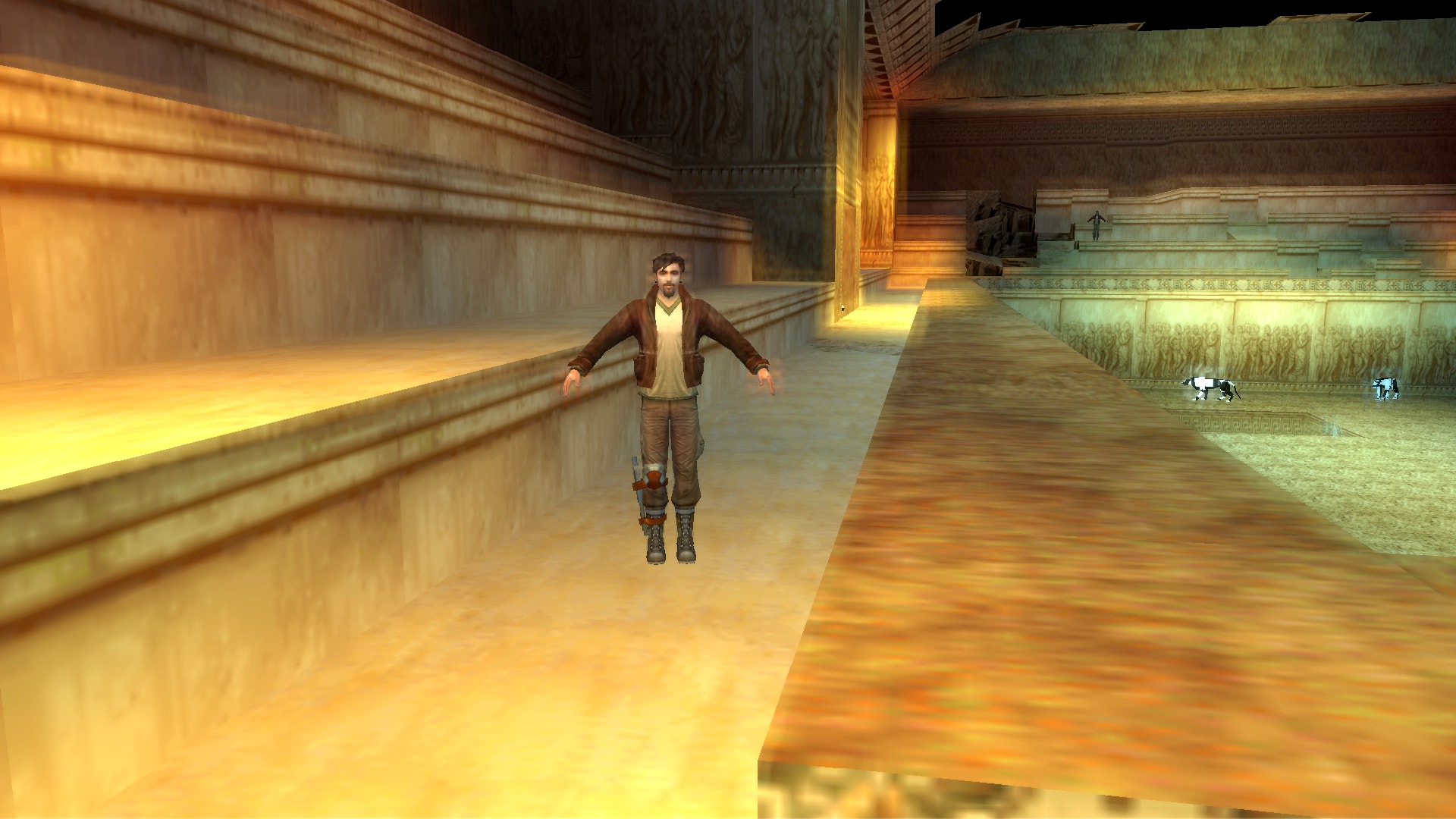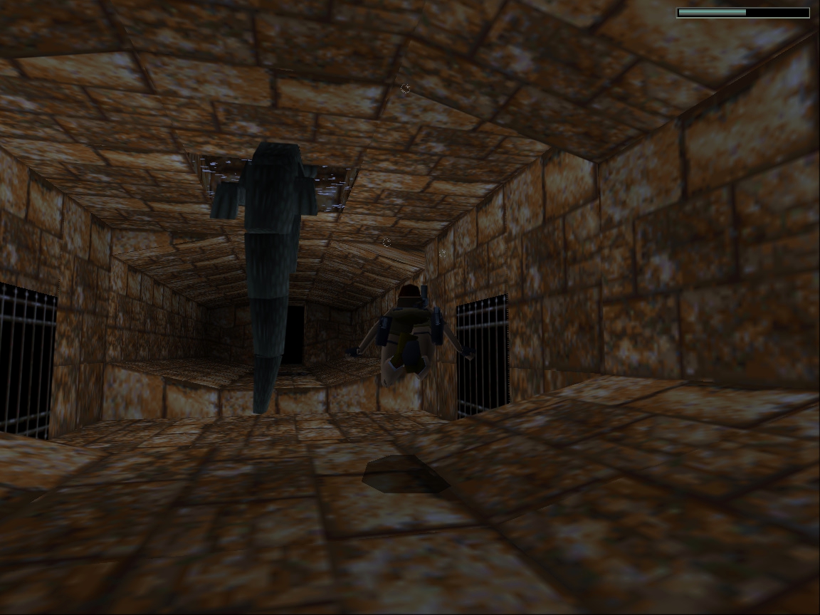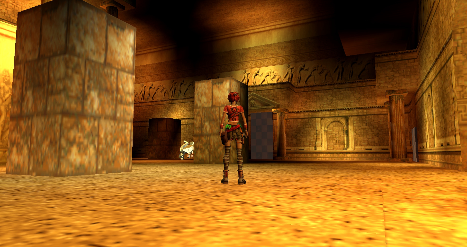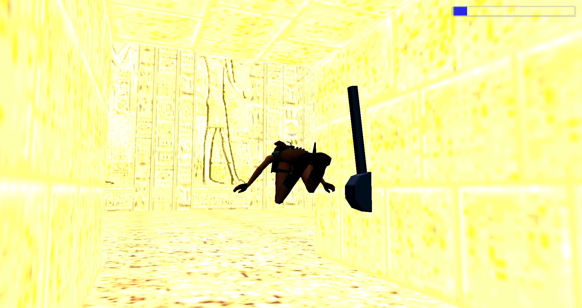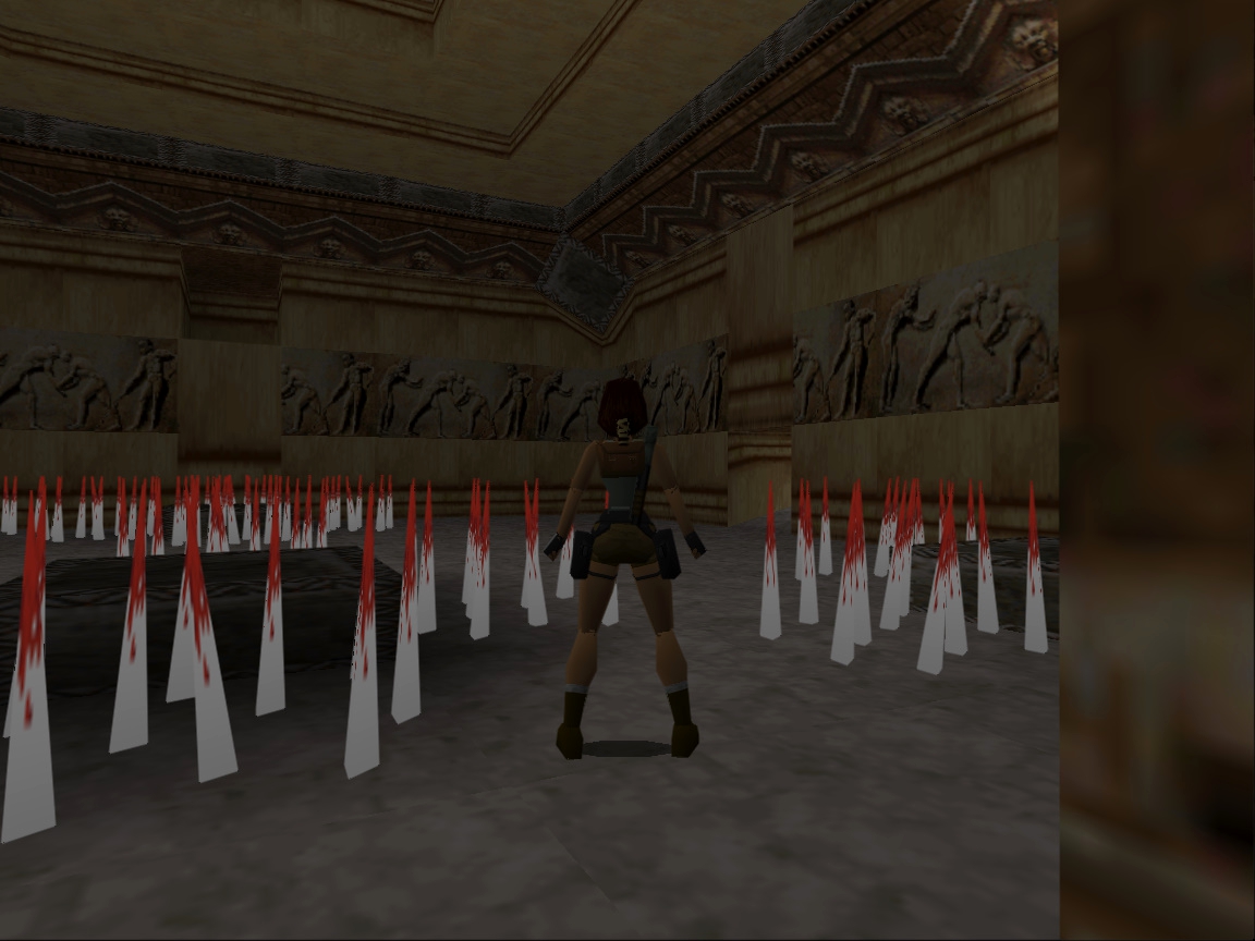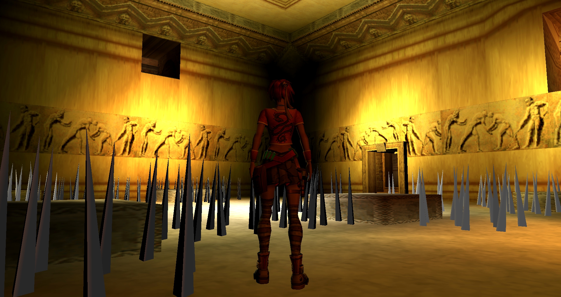 Вообще, уровень вобрал в себя две эпохи, отчего начинаешь игру с переделанной локации, а где-то к середине попадаешь в привычный 1996 год. Разумеется, до финала тут как до луны, враги стоят столбом, белые все, кроме крокодилов, которые, как оказалось, всё-таки могут плавать (хотя это может быть реставрацией фанатов, ибо уровень не запускался без вмешательства). Двери к испытаниям стоят без текстур, но коды к ним те же самые, что в оригинале, но зайдя к ним – ничего не работает. Колона не обрушает локацию, а огня и вовсе нет, тем не менее я не жалуюсь на такую недоработку, всё-таки огненное испытание поджигало не только Лару...