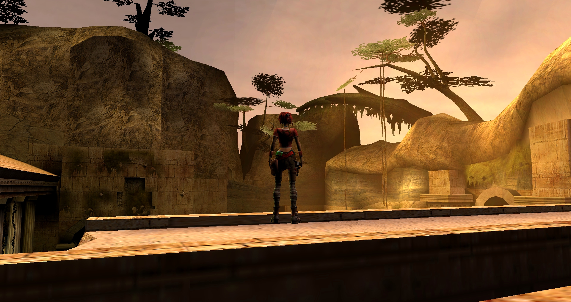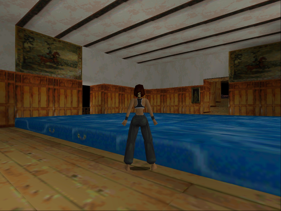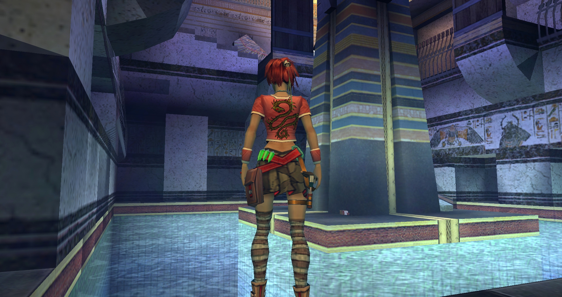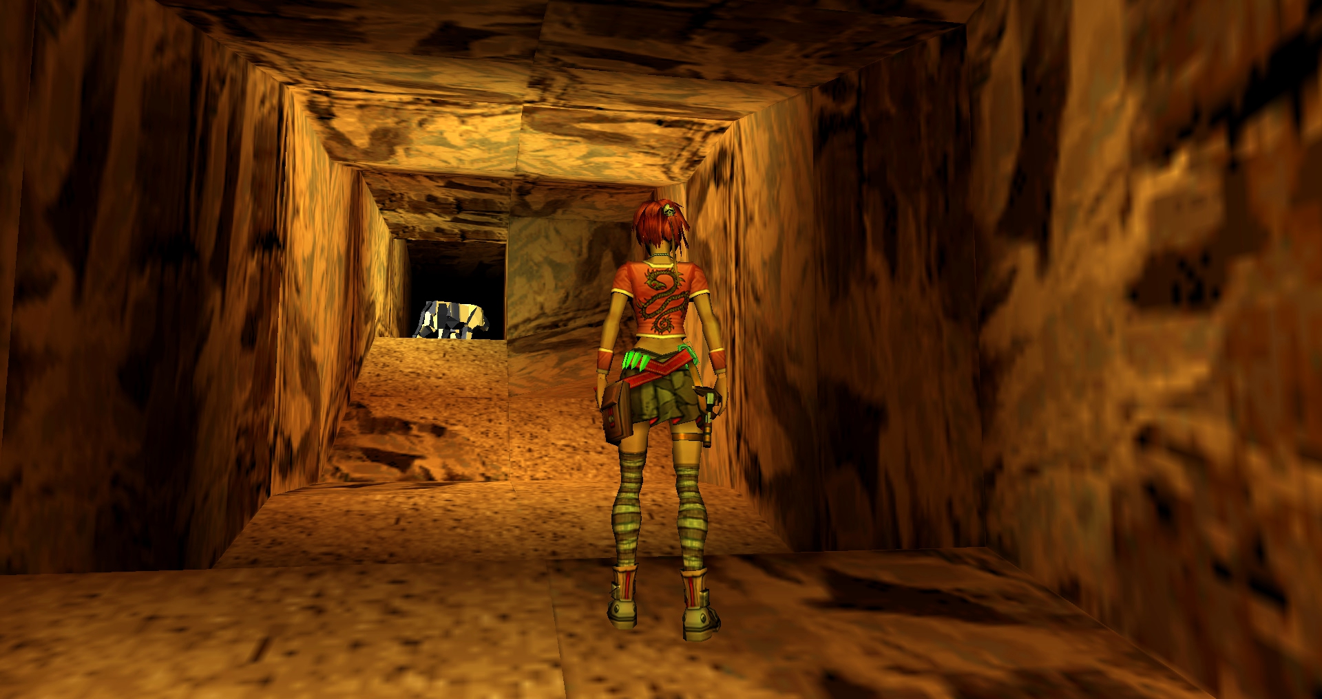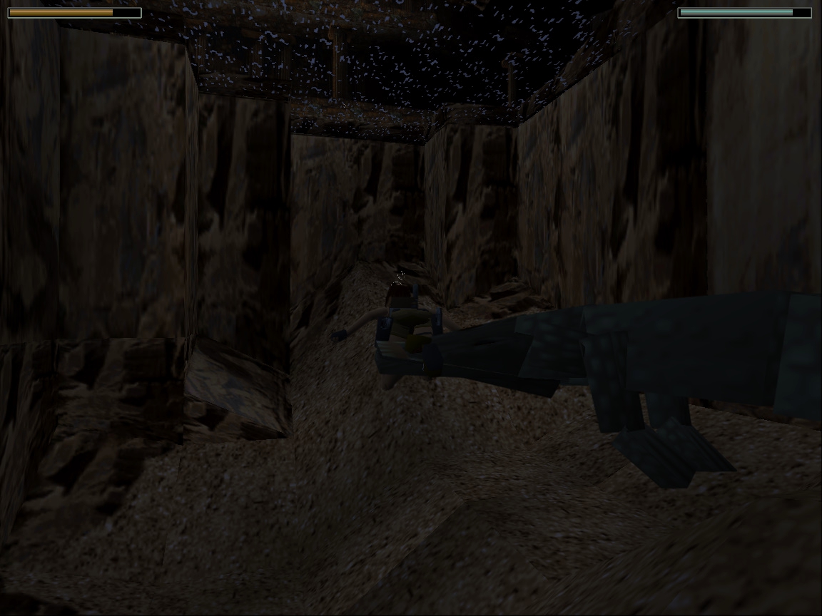 Вообще, уровень вобрал в себя две эпохи, отчего начинаешь игру с переделанной локации, а где-то к середине попадаешь в привычный 1996 год. Разумеется, до финала тут как до луны, враги стоят столбом, белые все, кроме крокодилов, которые, как оказалось, всё-таки могут плавать (хотя это может быть реставрацией фанатов, ибо уровень не запускался без вмешательства). Двери к испытаниям стоят без текстур, но коды к ним те же самые, что в оригинале, но зайдя к ним – ничего не работает. Колона не обрушает локацию, а огня и вовсе нет, тем не менее я не жалуюсь на такую недоработку, всё-таки огненное испытание поджигало не только Лару...