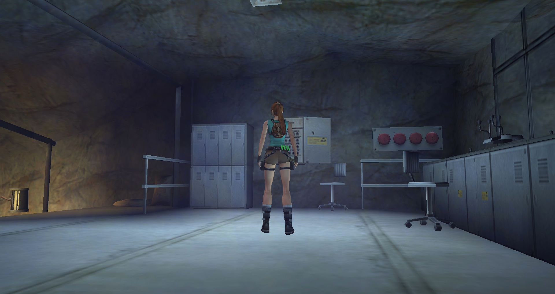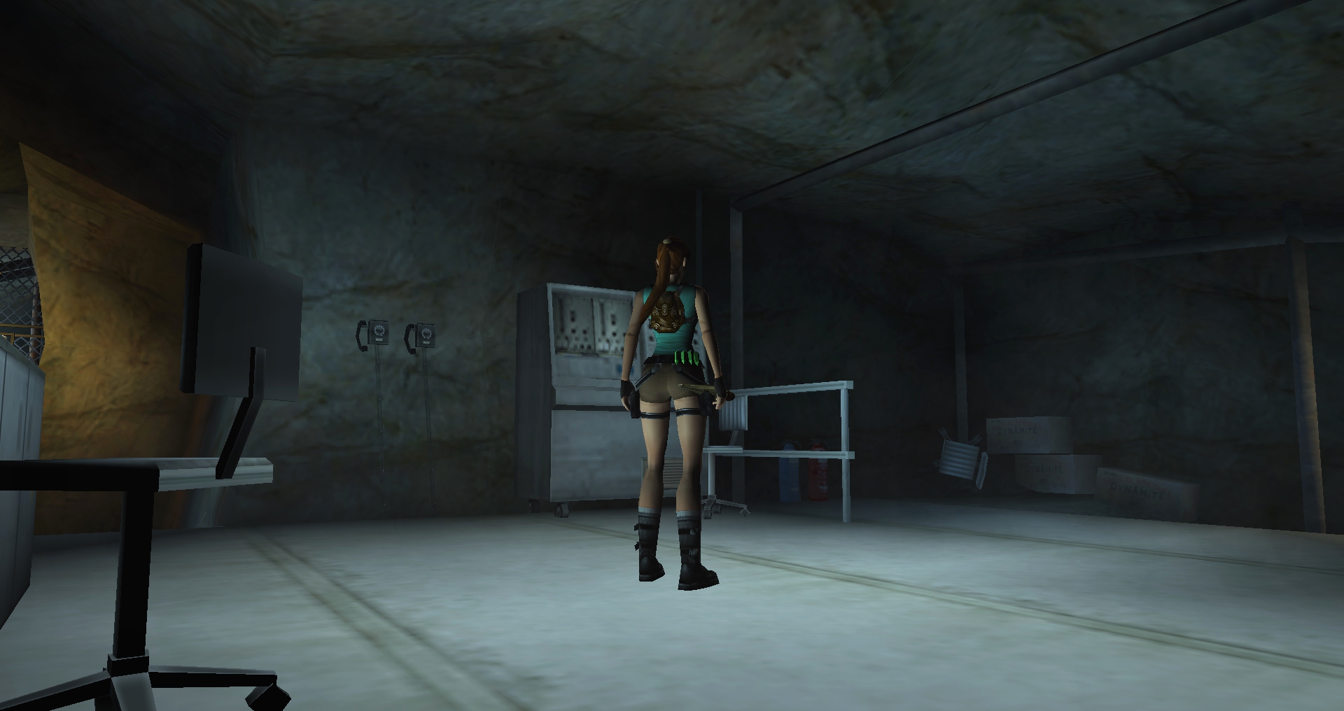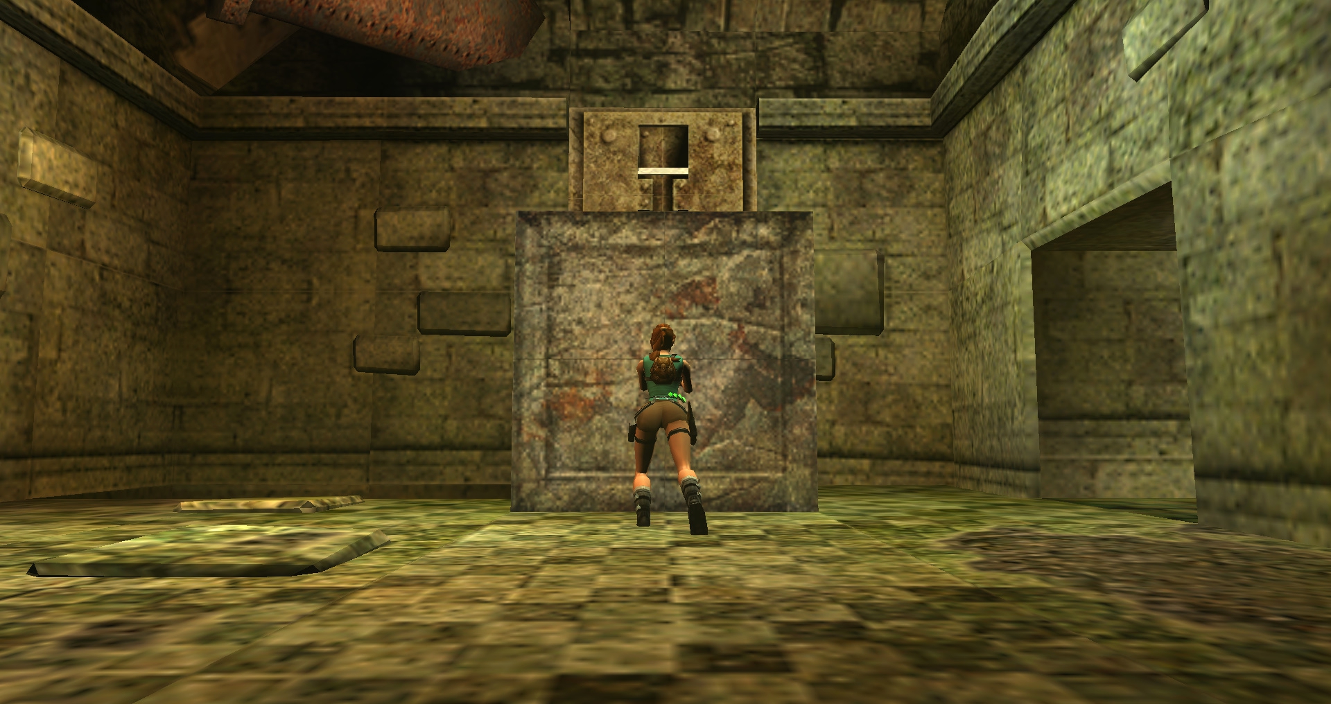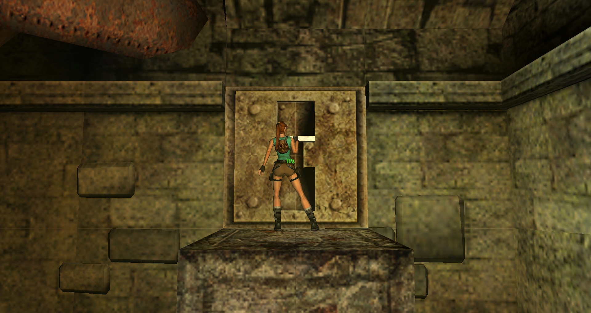 Во-вторых, безтекстурные механизмы, которые не работают в PC – в PSP имеют текстуру и модель из оригинала 1996 года, а также слабый, но всё-таки рабочий функционал. Слабый потому, что Лара взобраться на них никак не может.