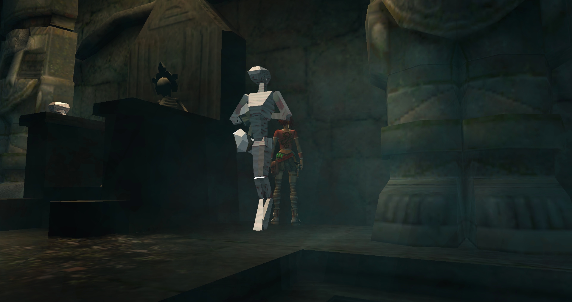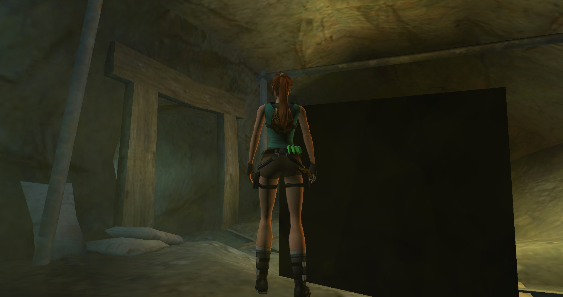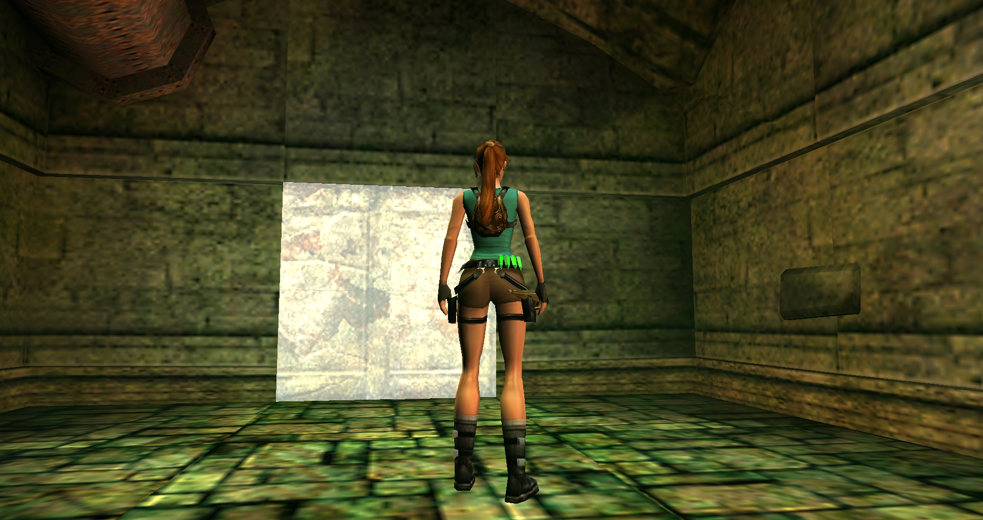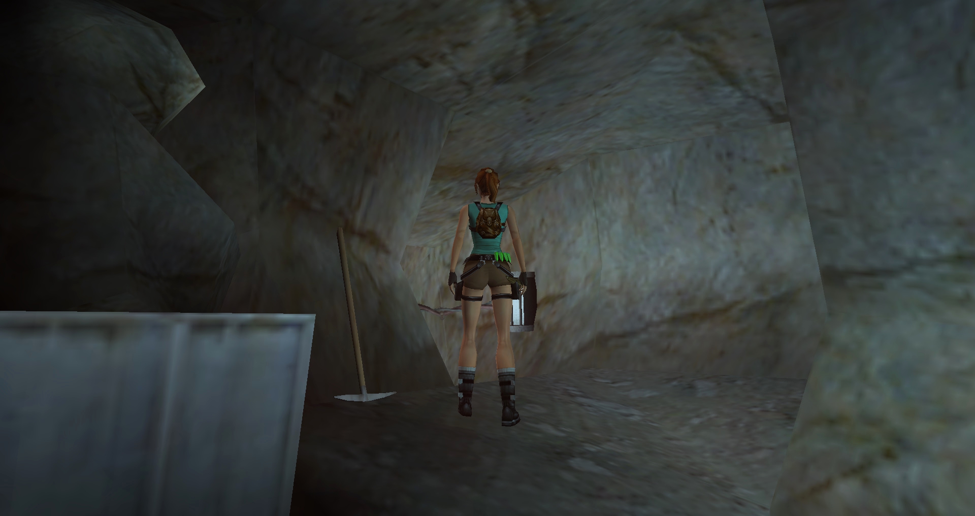 Во-вторых, безтекстурные механизмы, которые не работают в PC – в PSP имеют текстуру и модель из оригинала 1996 года, а также слабый, но всё-таки рабочий функционал. Слабый потому, что Лара взобраться на них никак не может.