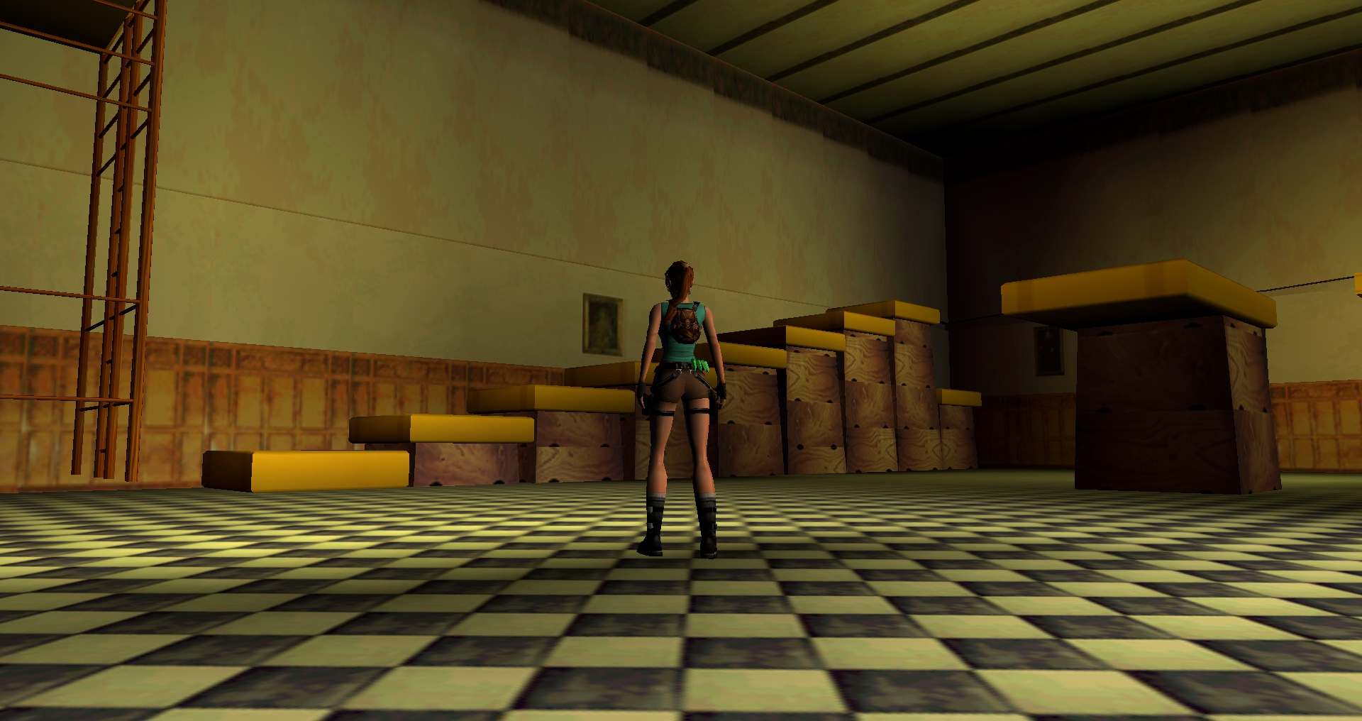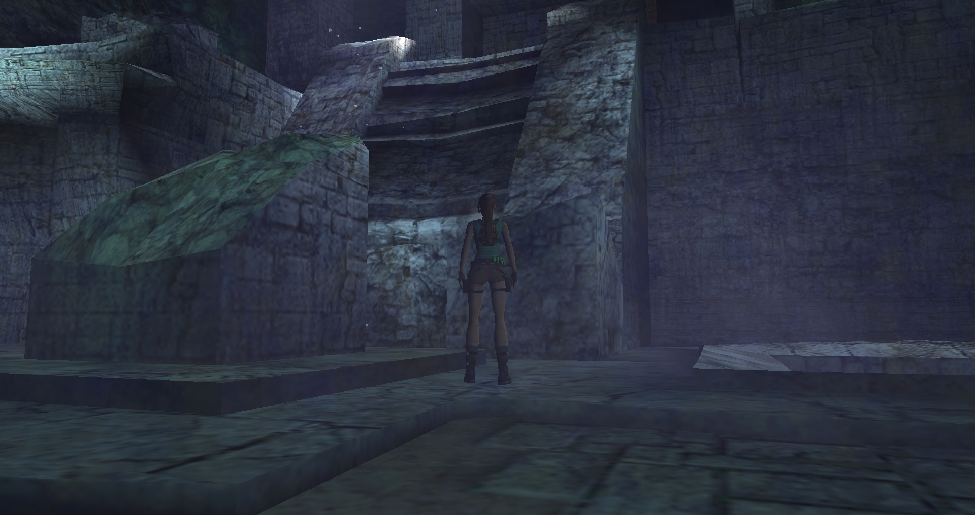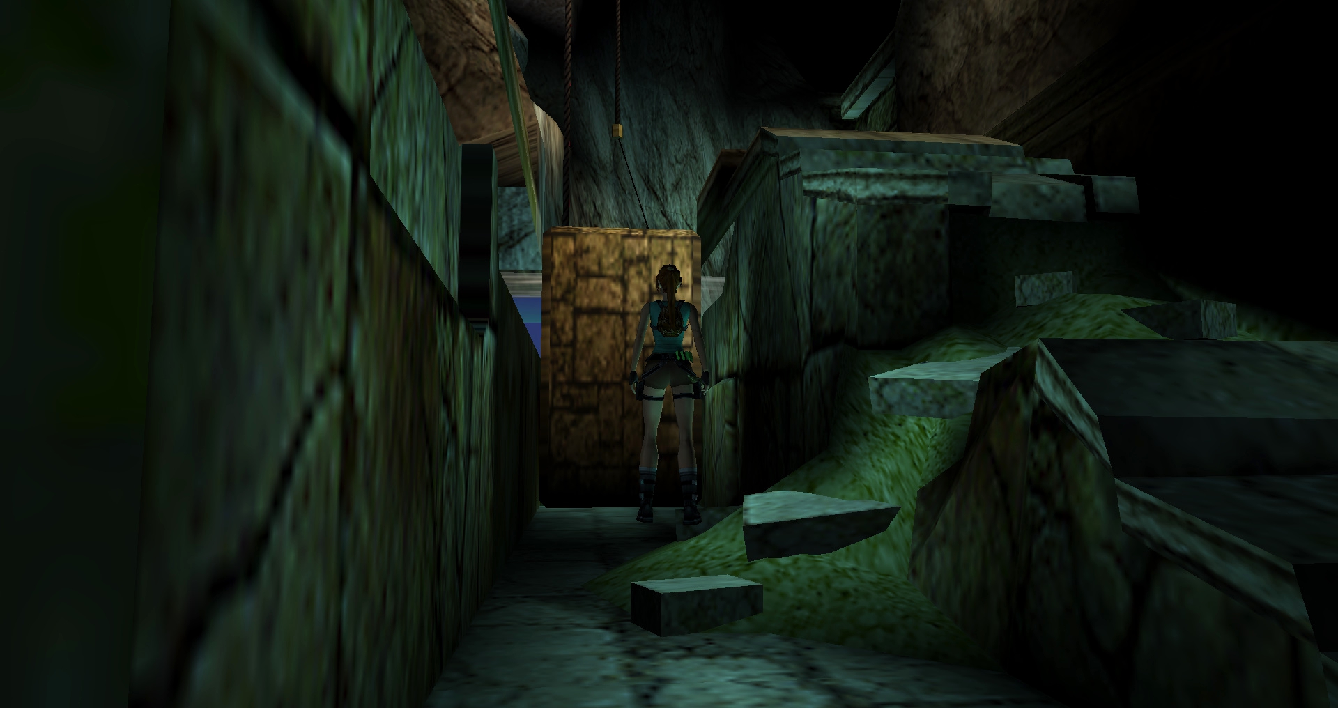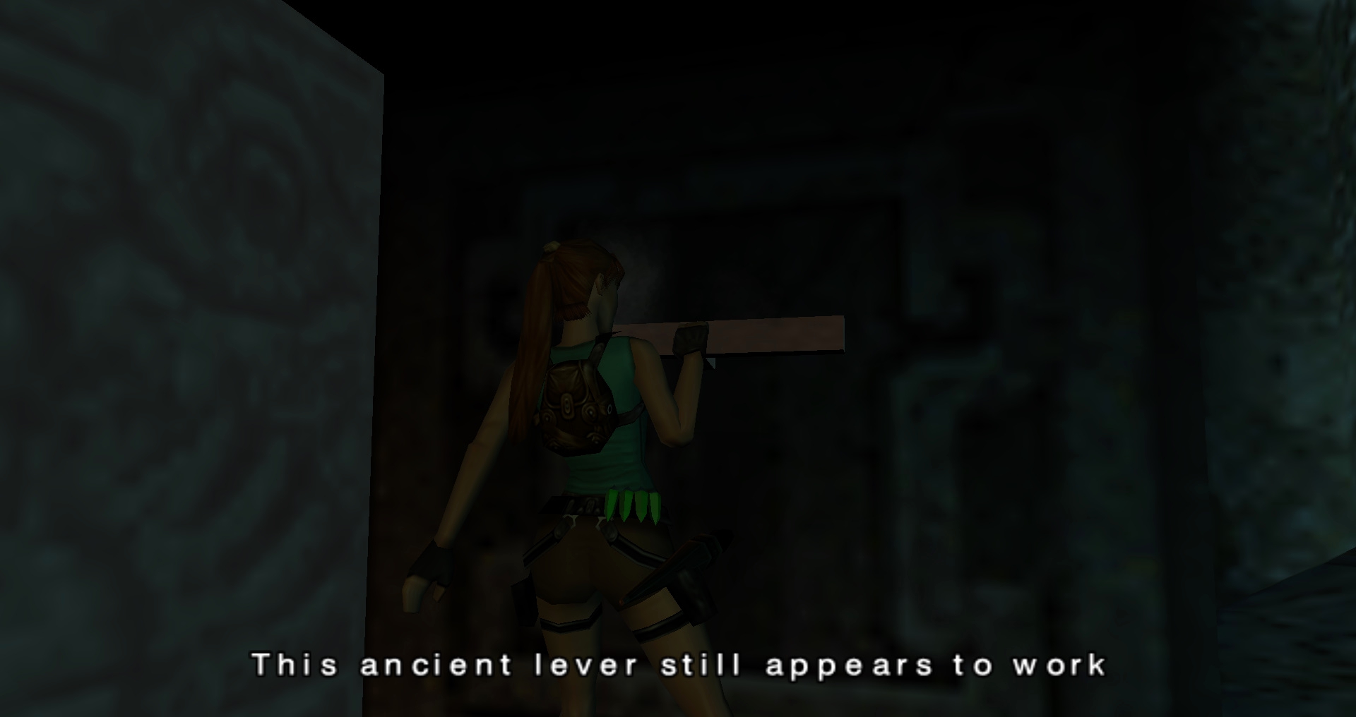 Во-вторых, безтекстурные механизмы, которые не работают в PC – в PSP имеют текстуру и модель из оригинала 1996 года, а также слабый, но всё-таки рабочий функционал. Слабый потому, что Лара взобраться на них никак не может.