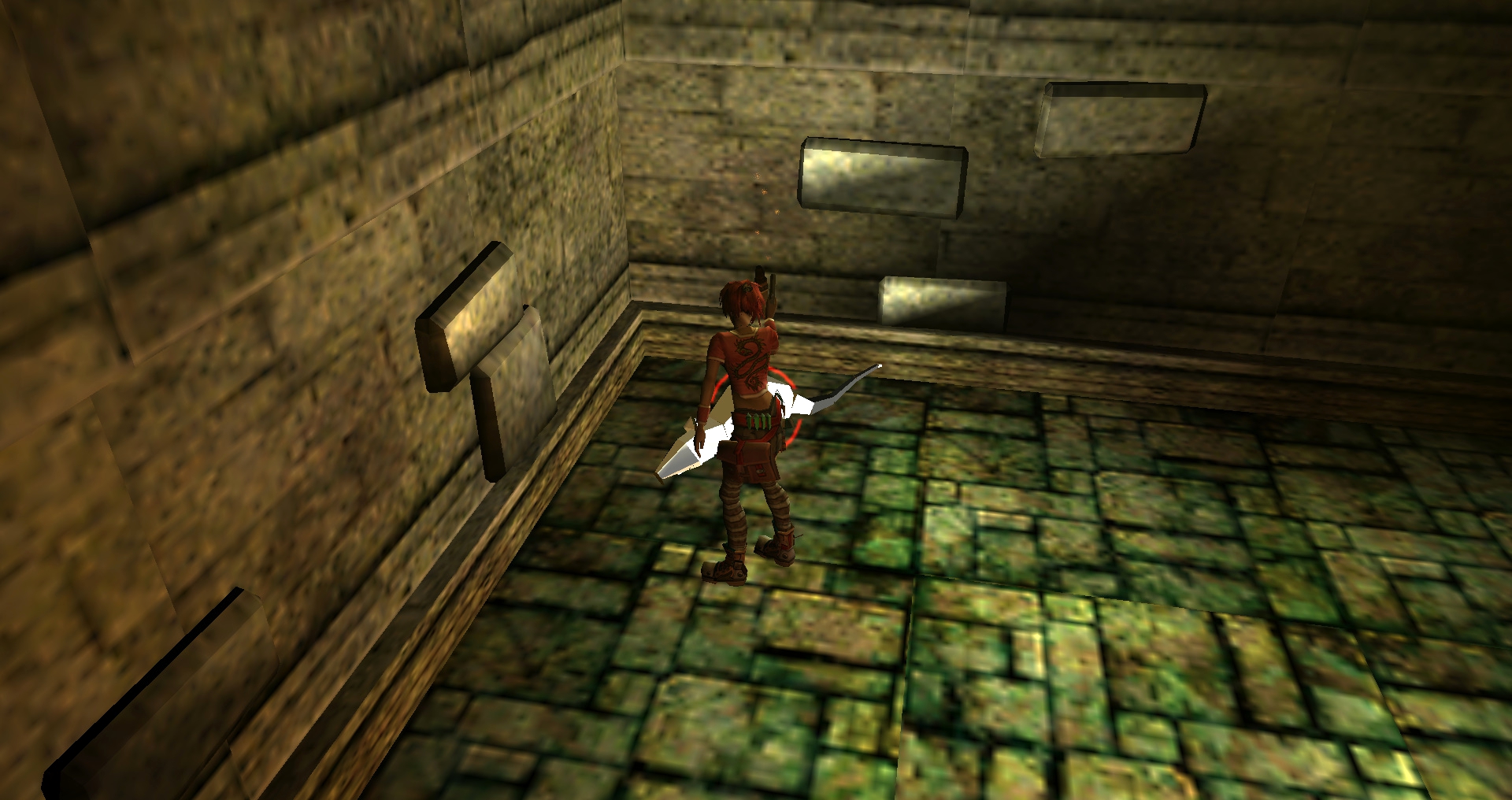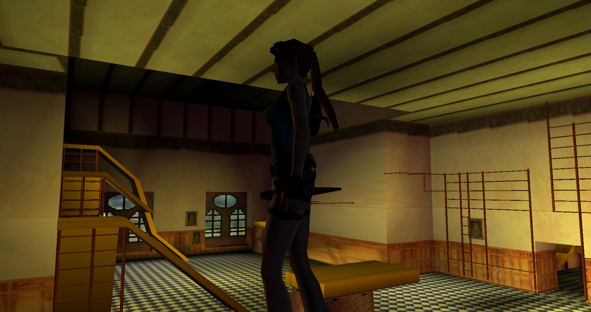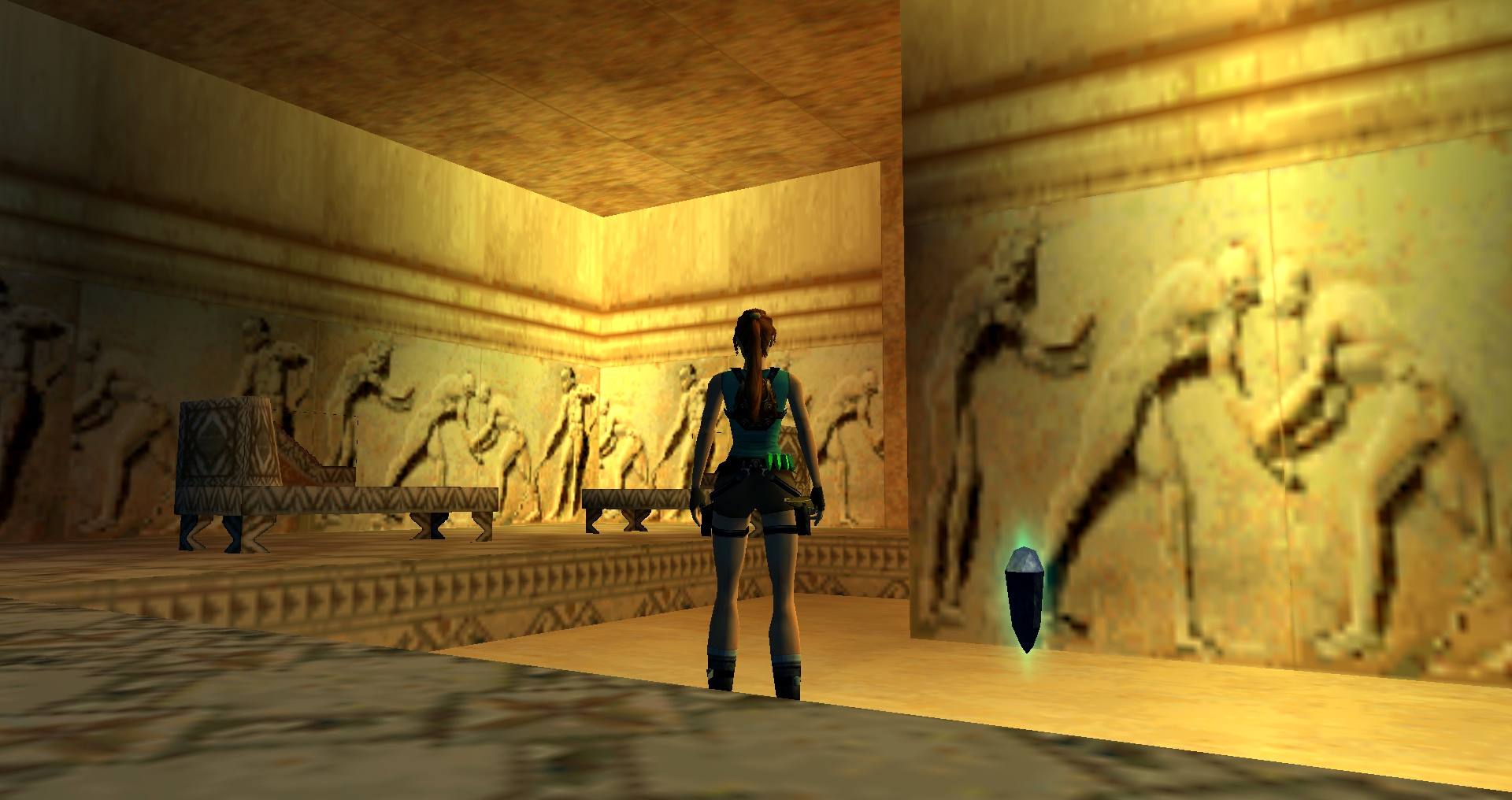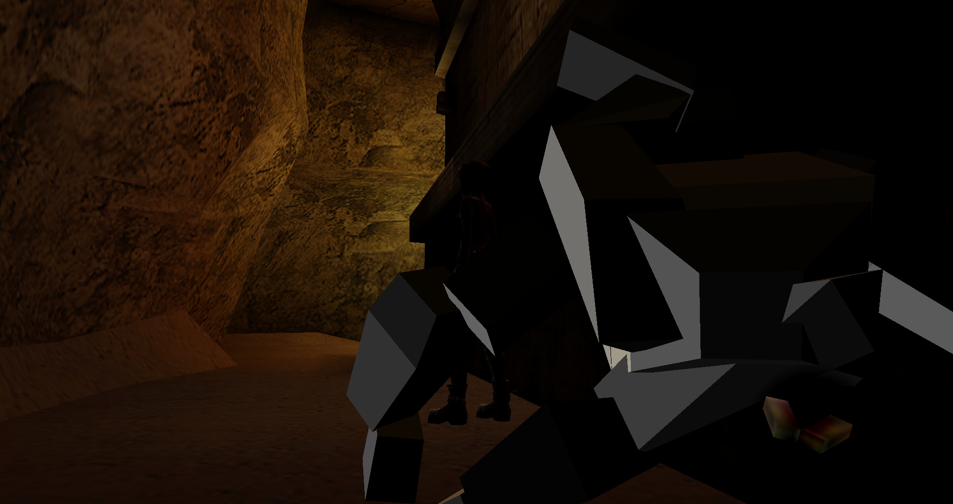 Во-вторых, безтекстурные механизмы, которые не работают в PC – в PSP имеют текстуру и модель из оригинала 1996 года, а также слабый, но всё-таки рабочий функционал. Слабый потому, что Лара взобраться на них никак не может.