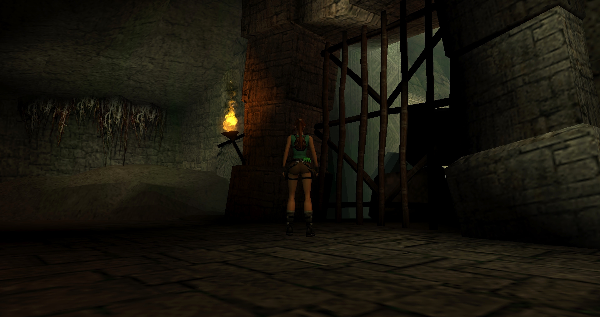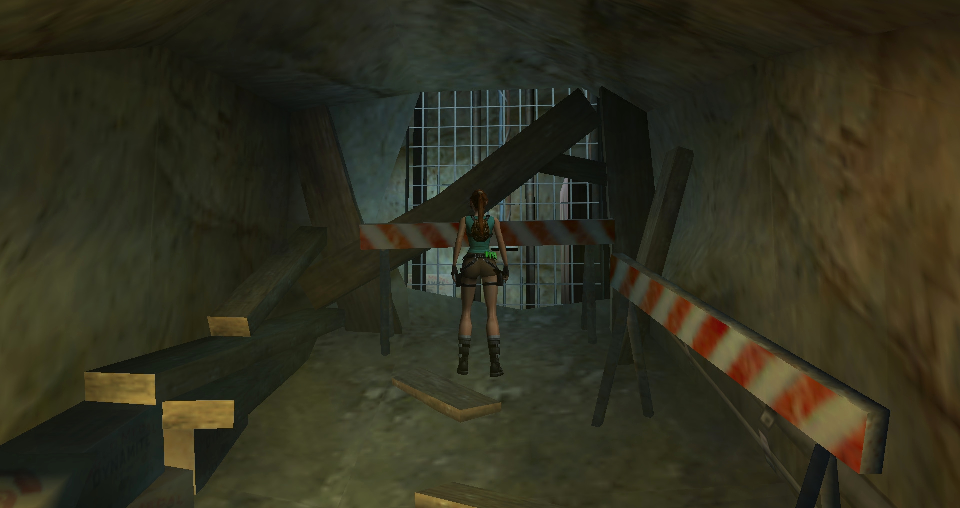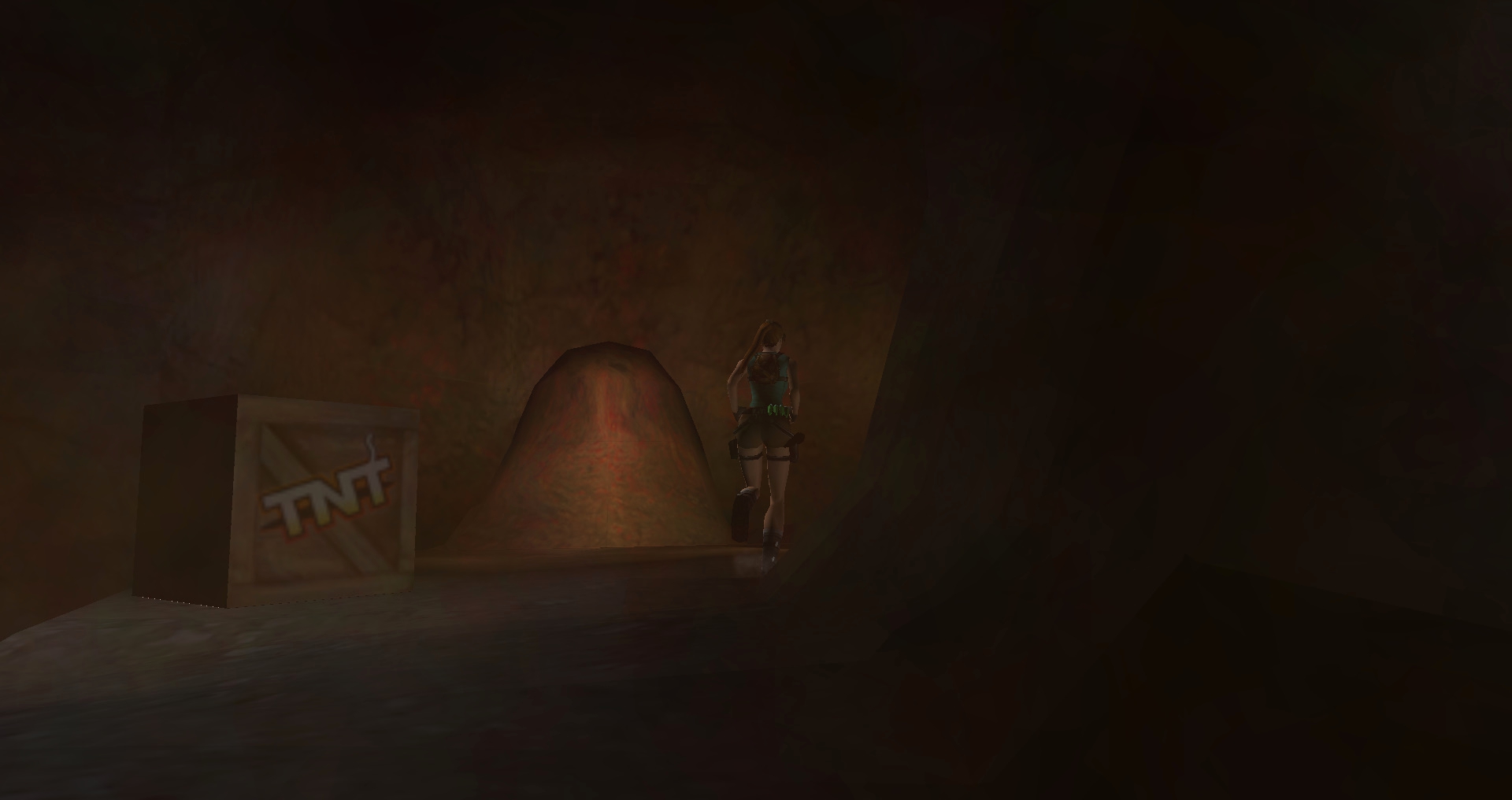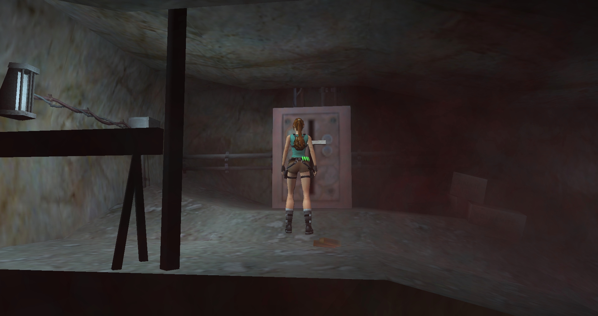 Снова враги тут помечены как ящики TNT, а ключи – деревянные шестерни. Лавовые участки имеют столбы, что появились в ремейке 2007 года, но Лара на них запрыгнуть не может.