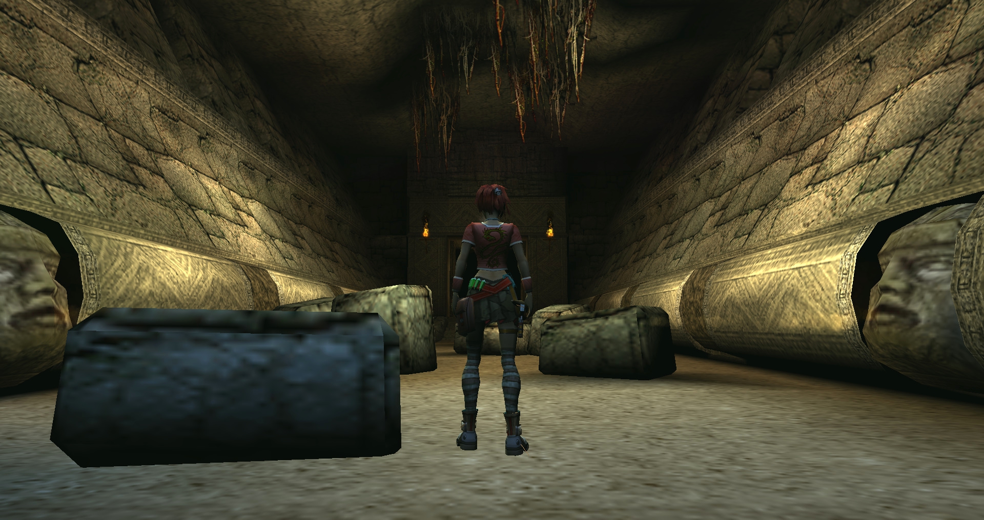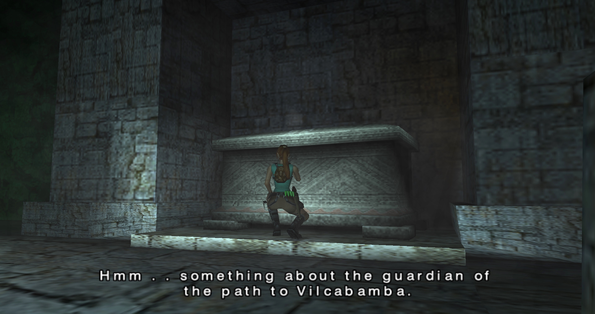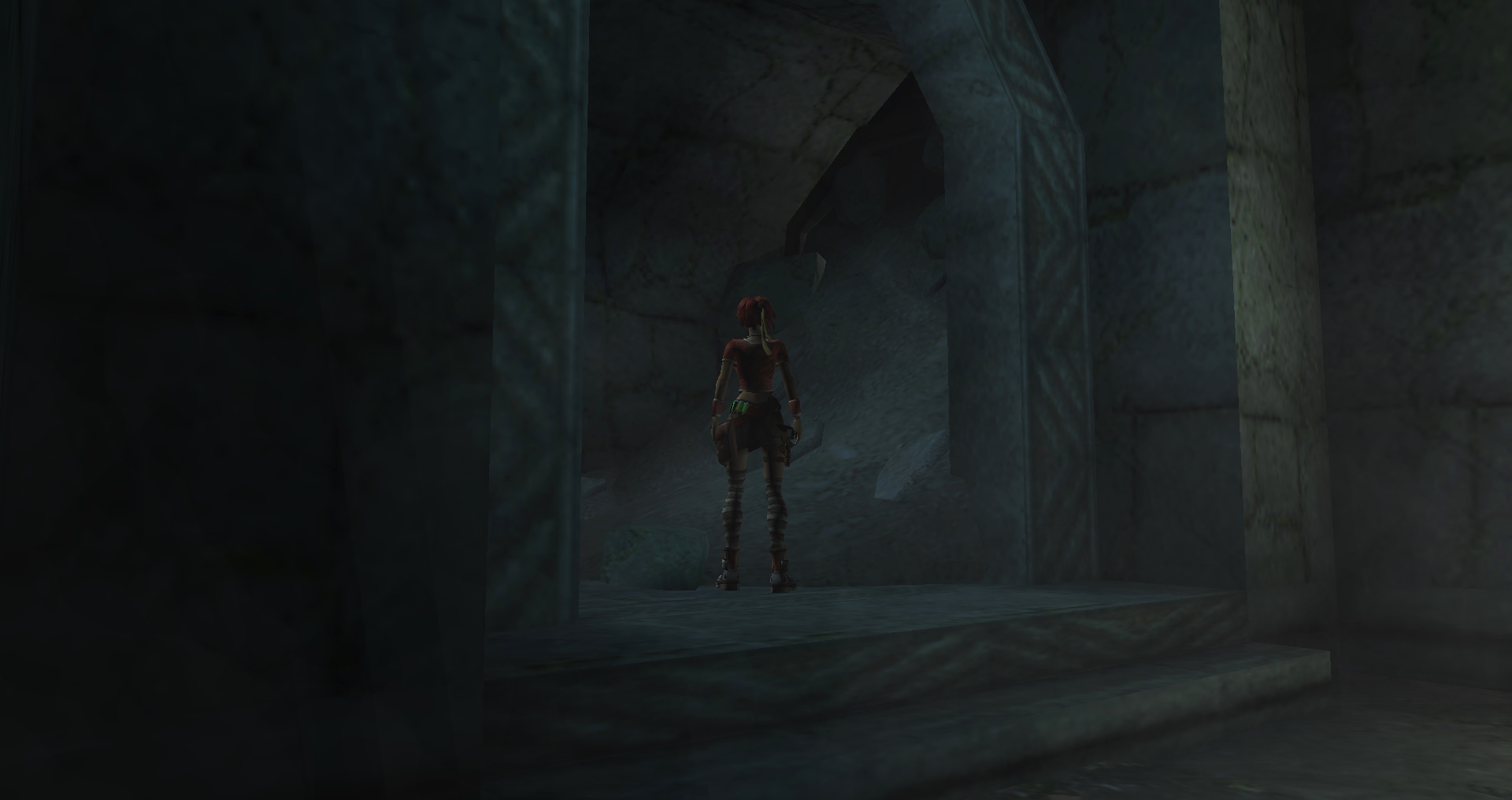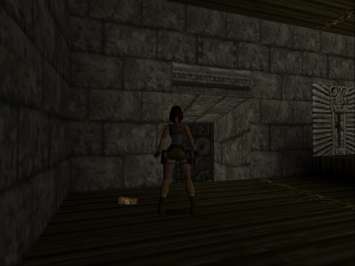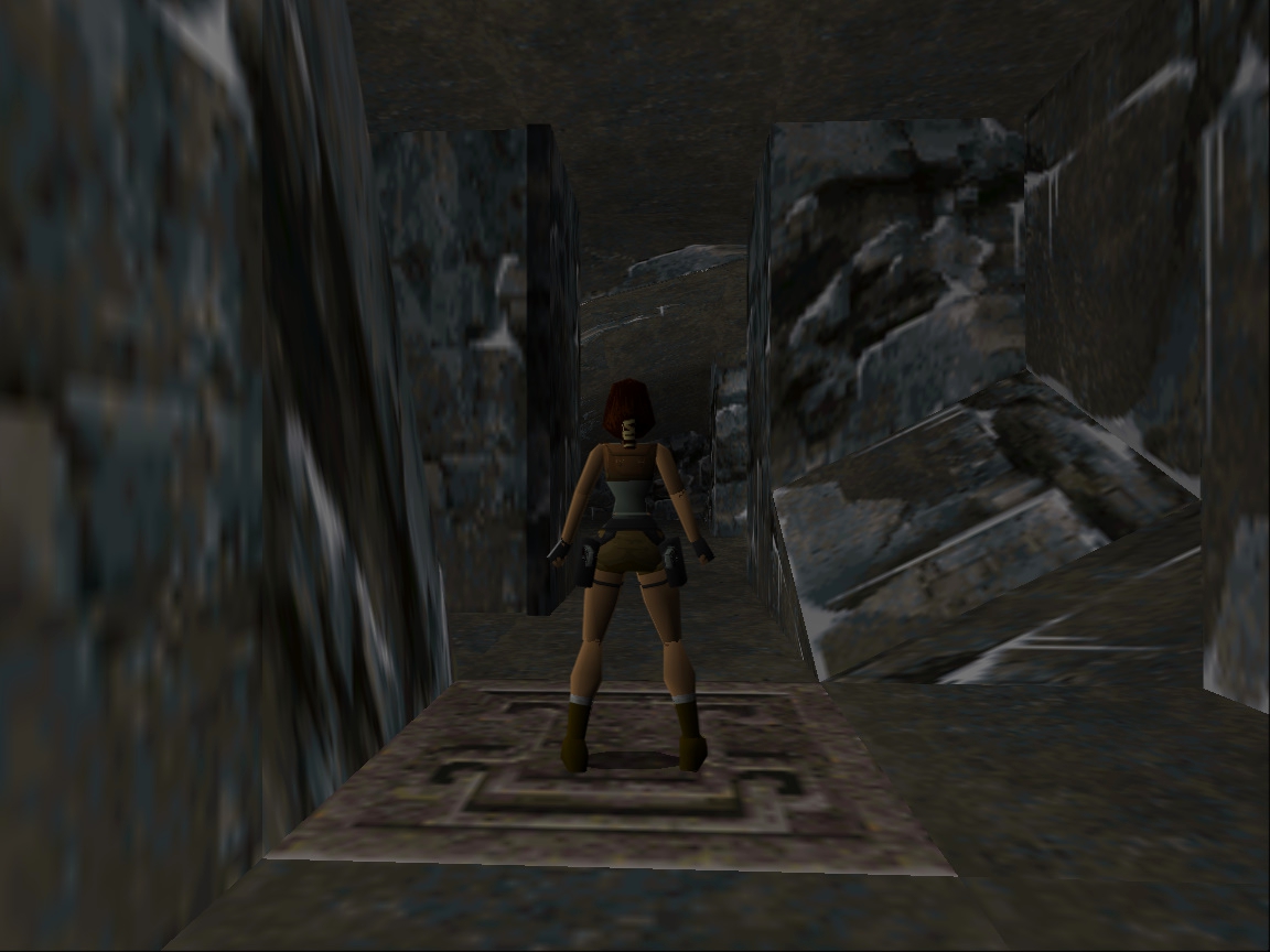 Гробница. Запускается очень проблемно, через каждый шаг – тонна ошибок. Много дырявых мест и объектов, которые не имеют своих текстур на PC. В заготовках имеются две кат.сцены: катящийся валун и Лара смотрящая на скелет Куалопека.