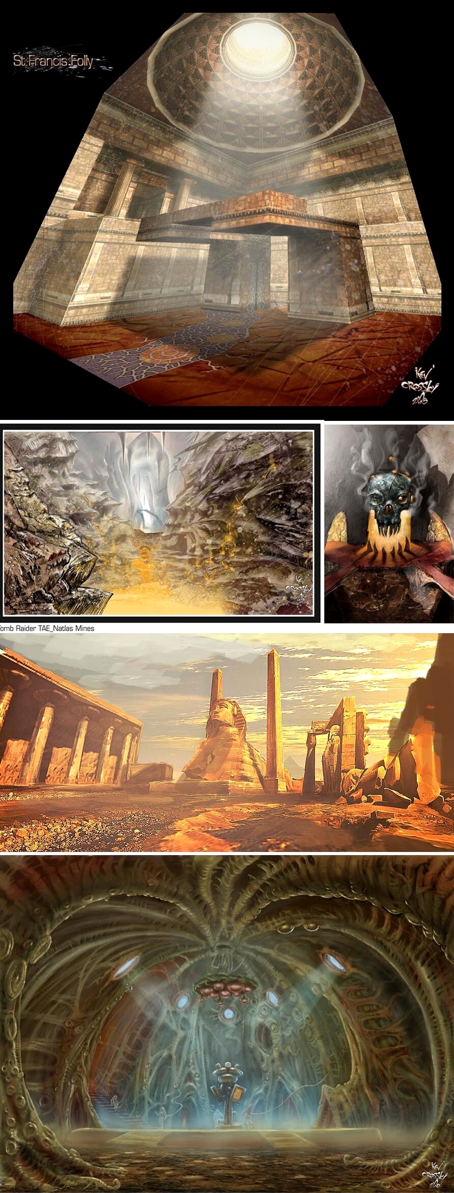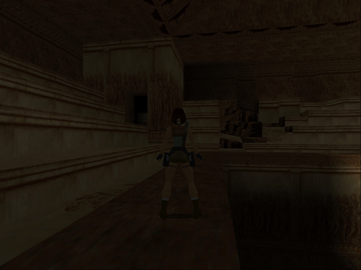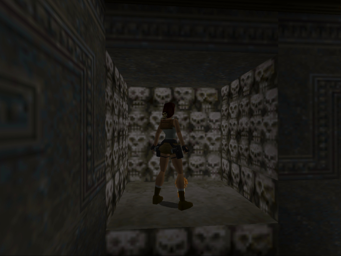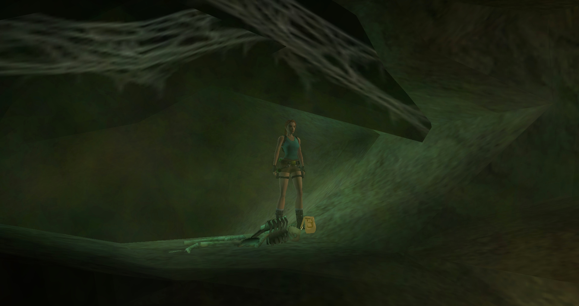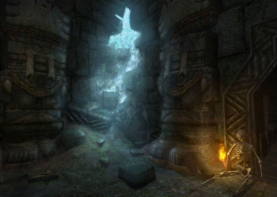 Гробница. Запускается очень проблемно, через каждый шаг – тонна ошибок. Много дырявых мест и объектов, которые не имеют своих текстур на PC. В заготовках имеются две кат.сцены: катящийся валун и Лара смотрящая на скелет Куалопека.