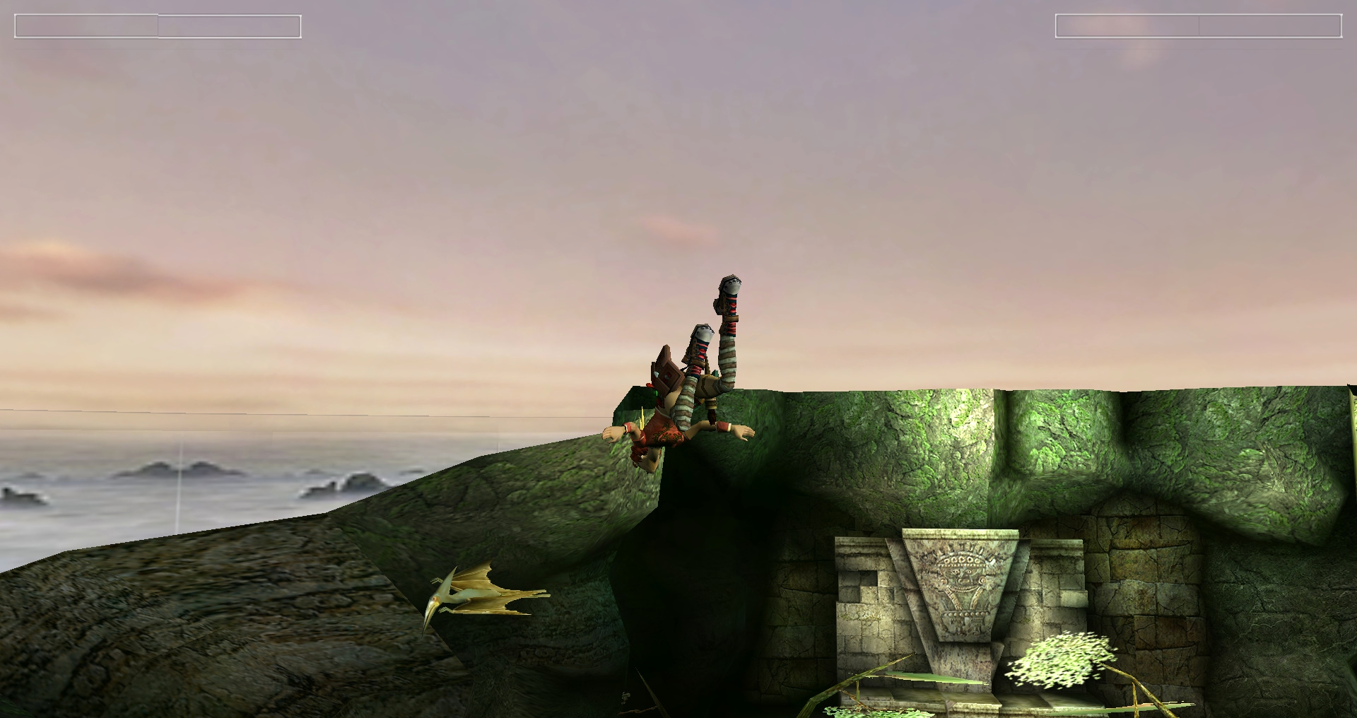 Сразу хочу заметить, что перед запуском уровня игра выдаёт тонну и две тележки ошибок на PC (у PSP версии с этим всё нормально), тем не менее уровень стартует и снова локация ближе к оригиналу по построению... А вот по дизайну выполнена даже лучше ремейка 2007 года! Несмотря на неотображаемые текстуры в некоторых углах локации, несмотря на прочую недоработку – потерянная долина вся зелёная! Чувствуются тропики, когда как в оригинале и ремейке 2007 года везде сплошь и рядом камень и серость.