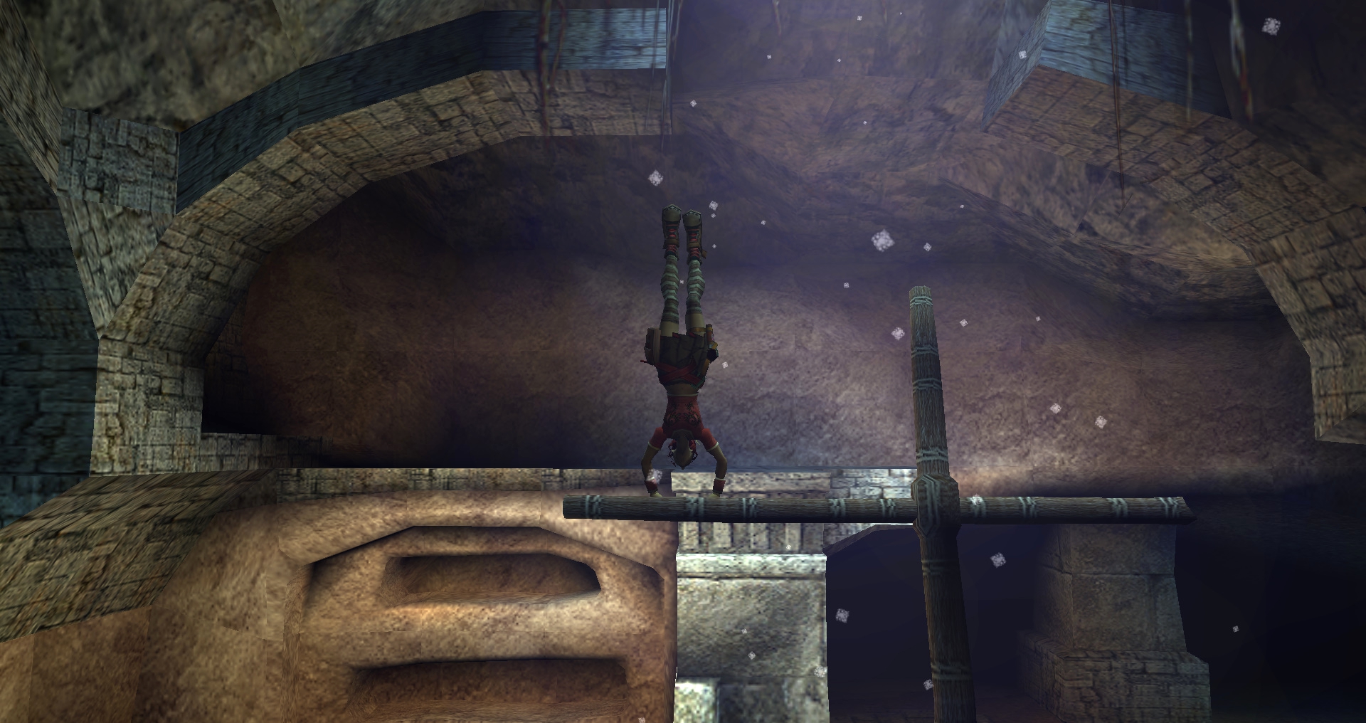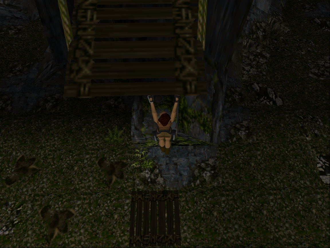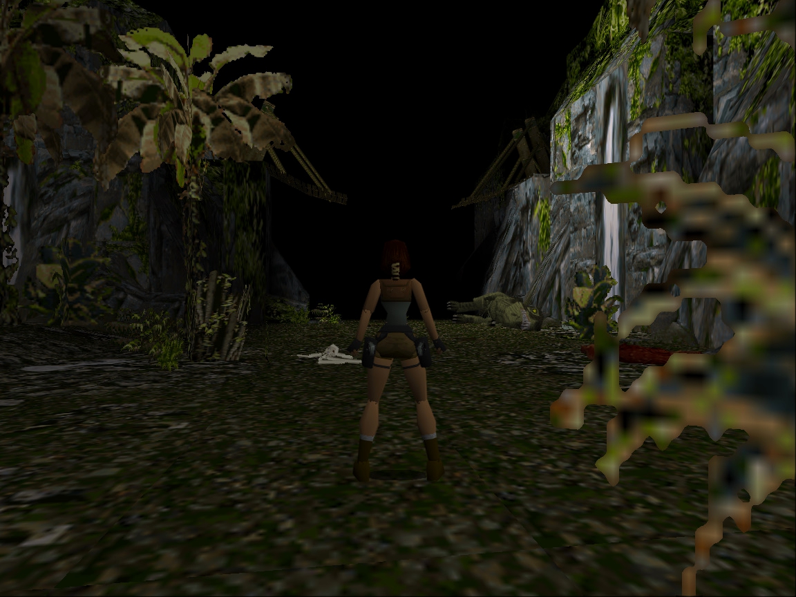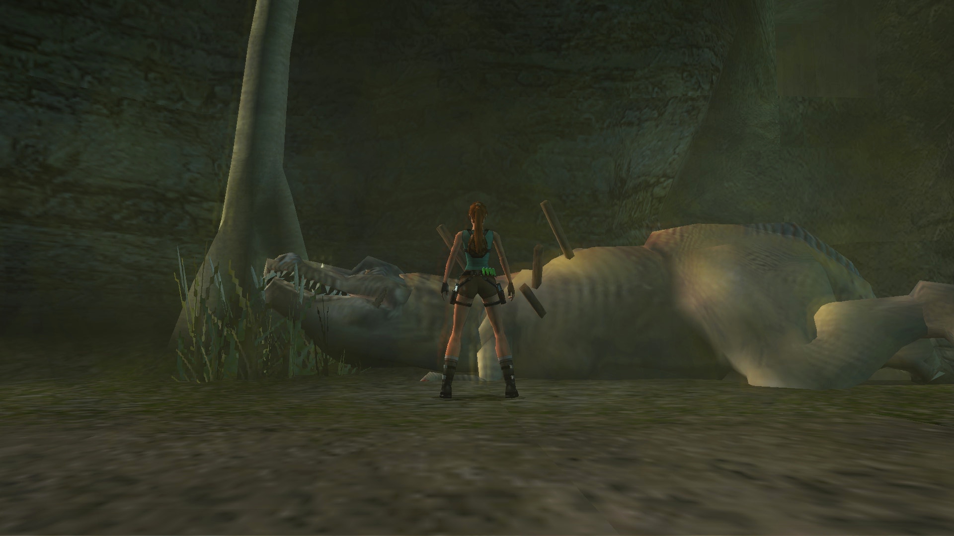 Мост, ведущей ко второй шестерне, отображается как целый, но на деле это не так и Лара благополучно провалится сквозь него. Причина этому явлению проста – в PC версии не проигрывается кат.сцена с Тиранозавром, которая есть в PSP.
