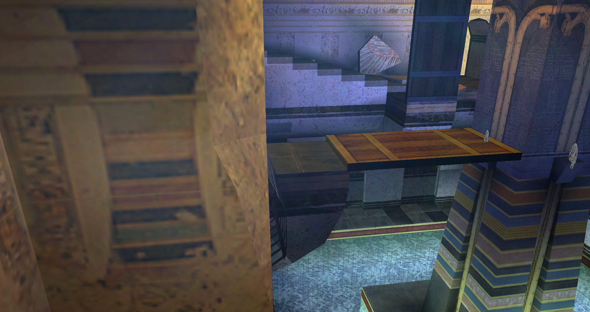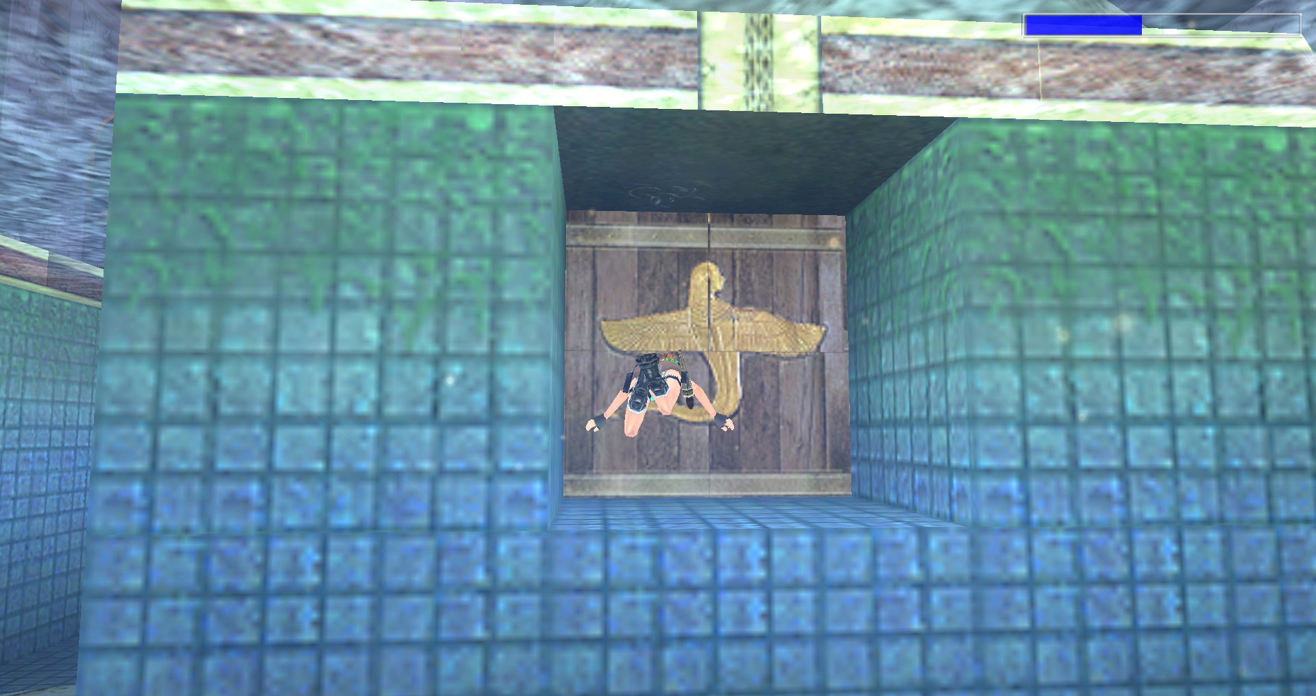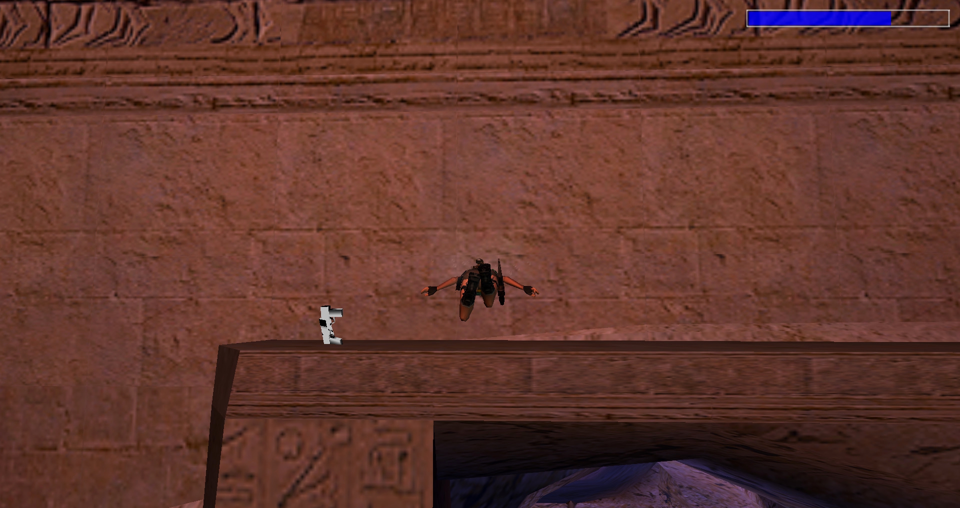 Без применения знаний об багах (бывает же такое) первой части больше половины уровня можно пропустить. Дело в том, что дверь, за которой находится обелиск со всеми нужными ключами-символами, закрыта, ключа нет. Чтобы пройти к обелиску, нужно прыгнуть в угол двери и Лара окажется внутри. Без полёта тут тоже никак нельзя, ибо некоторые проходы замурованы стеной, а также вода тут как пол.
