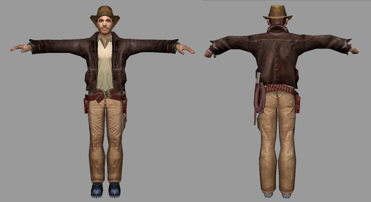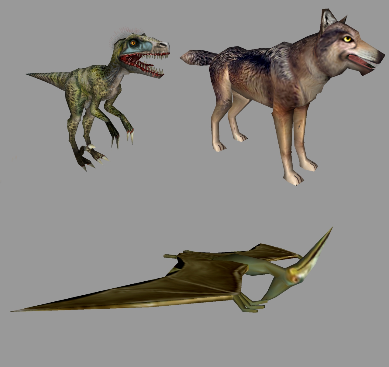 Раз уж мы затронули тему моделей, прототипов и ранних трейлеров, то пора бы уже и модели сюда приплести. В галерее я представляю увиденные в трейлере модели: летучей мыши (используется), медведя, велоцираптора (используется), волка (используется), птеродактиля (используется), Тираннозавра (используется) и Ларса. Ларс сильно отличается от того, что в существующих играх, в частности наличием ковбойской шляпы, бронежилета и изменением лица. Смешно, но Ларс отлично подошел под перекраску модели в Индиану Джонса.