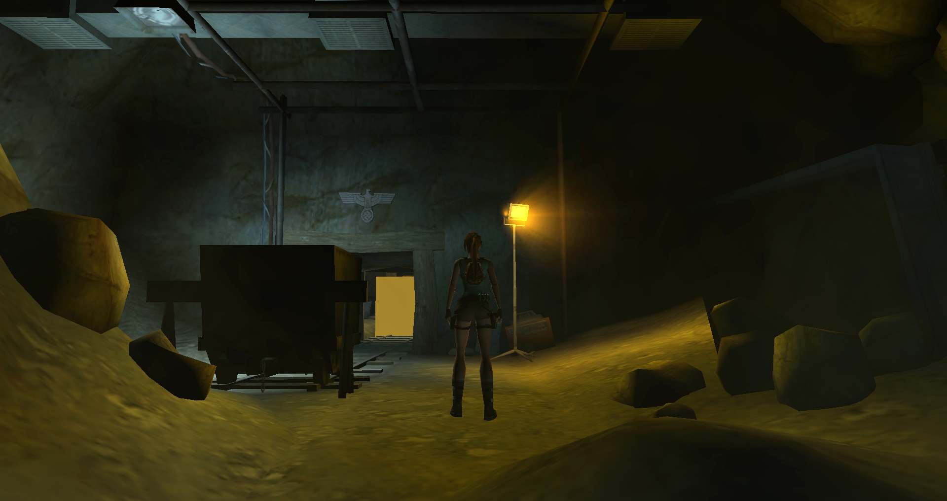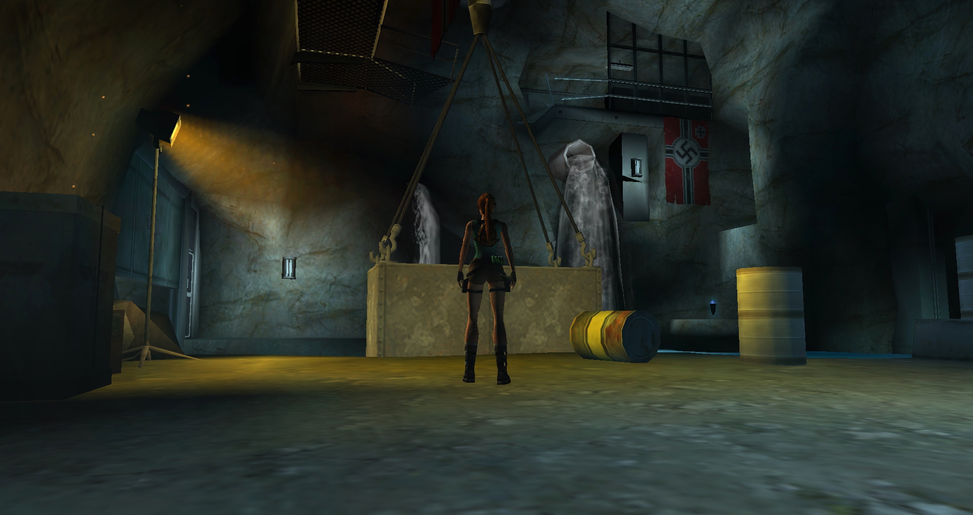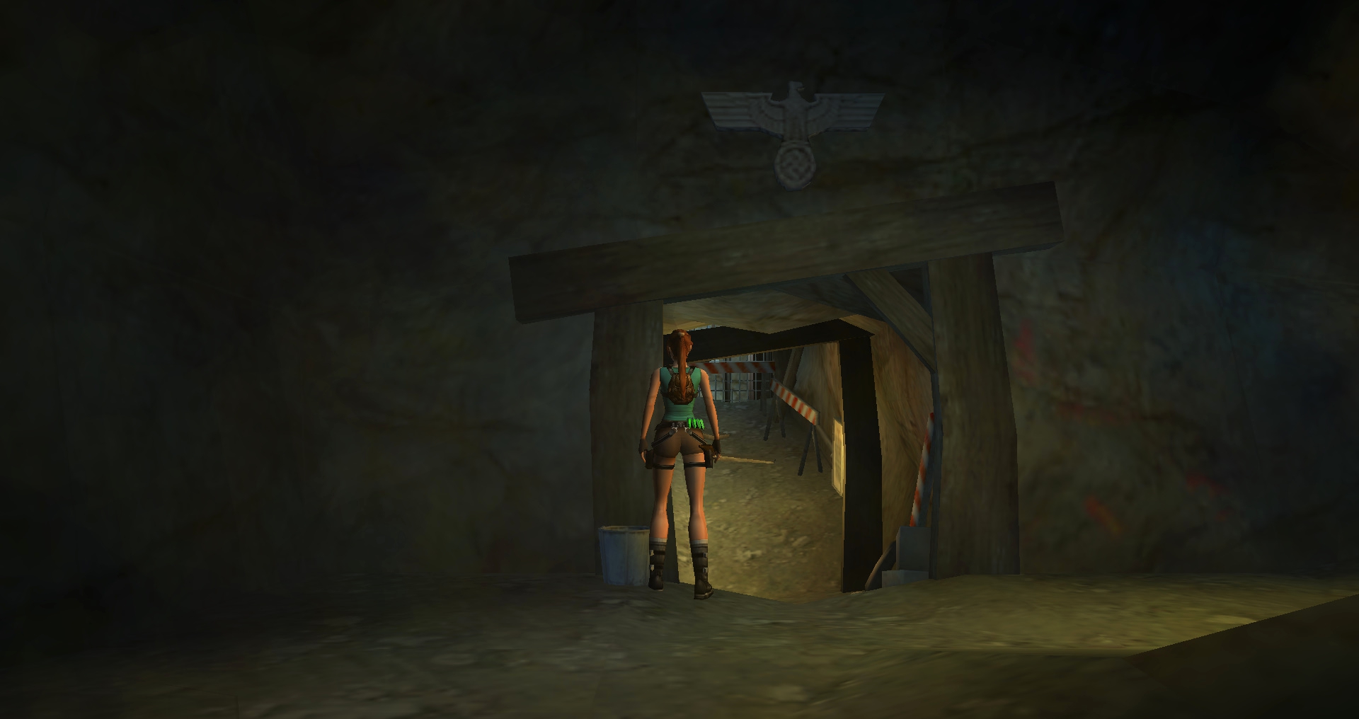 Вся локация красуется символикой Рейха, повсюду флаги, герба и ящики, никакого упоминания Натлы нет. Уровень пересобран настолько сильно, что офисов и приборов для раскопок тут больше, чем в ремейке 2007 года и в оригинале вместе взятых. Тут возникает вполне резонный вопрос: откуда взялись нацисты в 1996 году? У меня есть две теории: