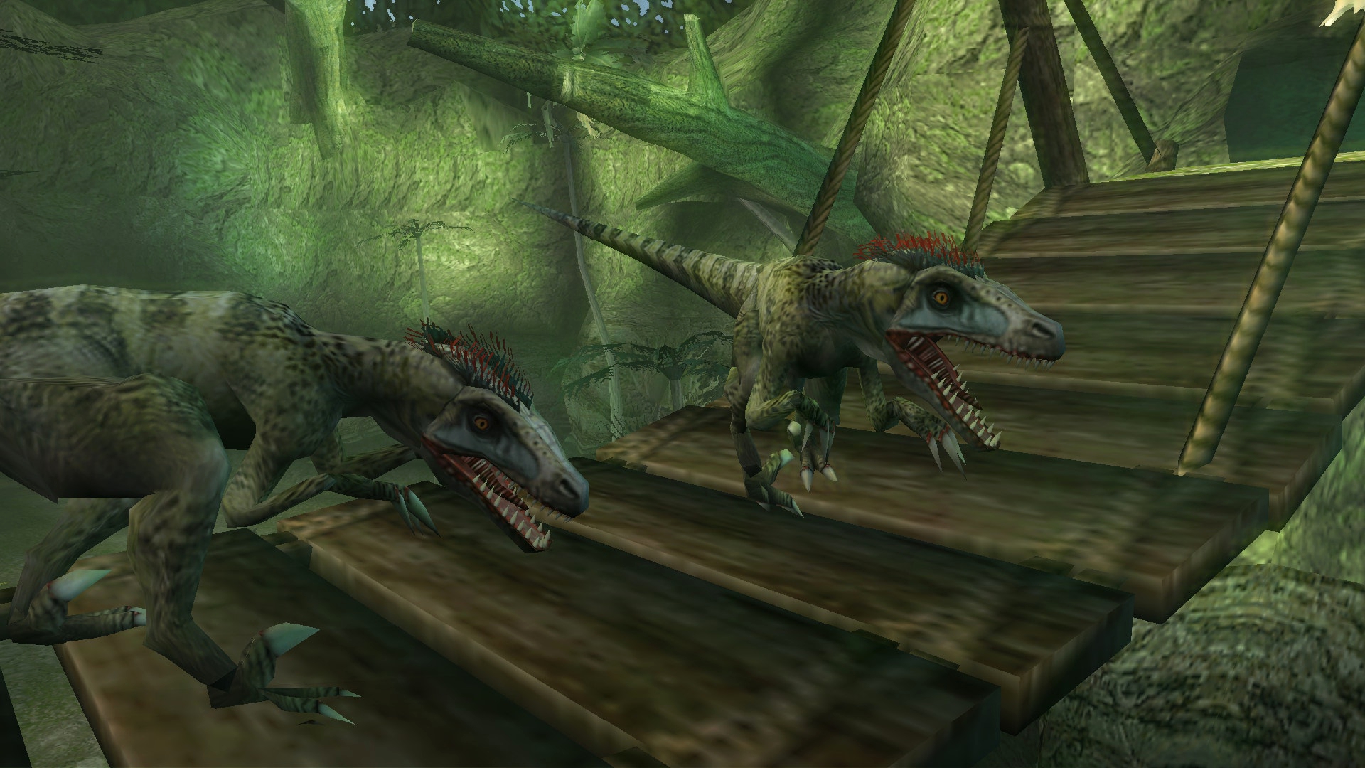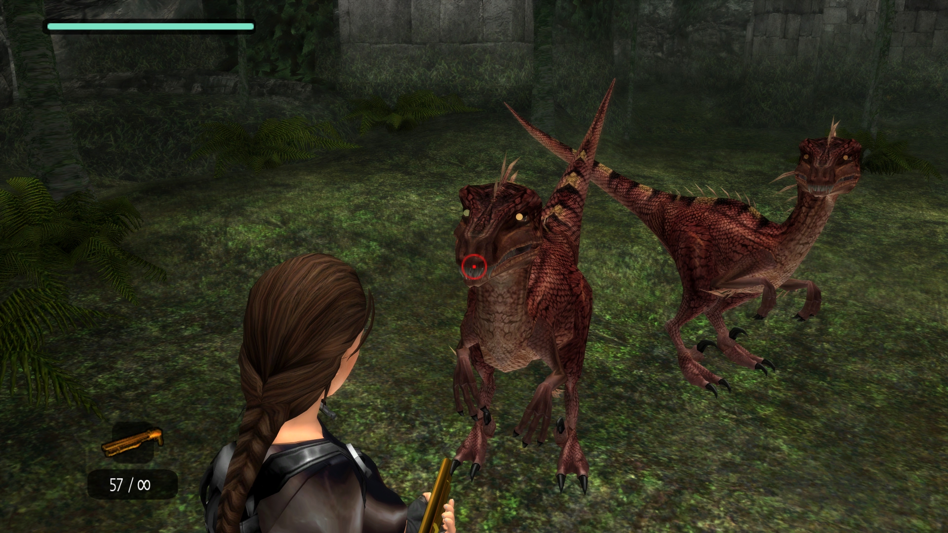 Во-первых, на локации расставлены велоцирапторы, которые не атакуют Лару и просто стоят неподвижно.