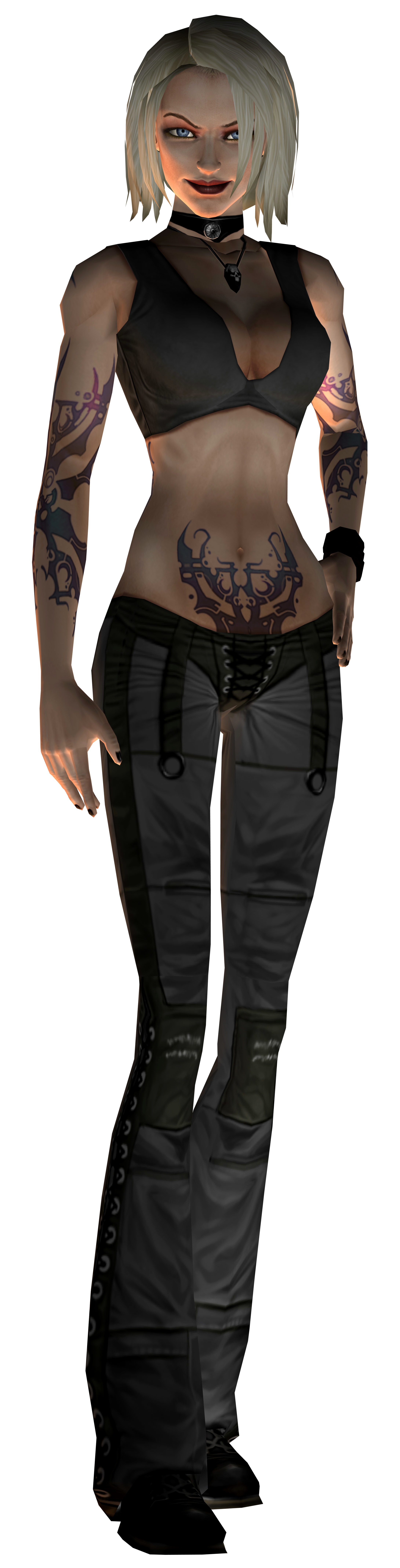 Следующие концепты, как принято считать, относятся к Натле. Деловая одежда, светлые волосы и демонические глаза – всё указывает на то, что это Натла... Если бы не одно "но" – игру разрабатывали параллельно с Tomb Raider: Legend, что зачастую видно в данном ремейке. Гранаты на спине Лары подтверждают мои слова. Но, сейчас не о сходстве двух игр, а об том, что Меллиса – это Аманда, из Tomb Raider: Legend. Рассматривая концепт можно заметить характерные татуировки, которые в том или ином виде перешли в первую часть трилогии! Возможно, ремейк должен был как-то связать отношения двух девушек и рассказать, в какой-либо мини-истории их судьбу. А возможно, что это всего-навсего скин мультиплеерного персонажа, подробную историю, увы, мы не знаем.