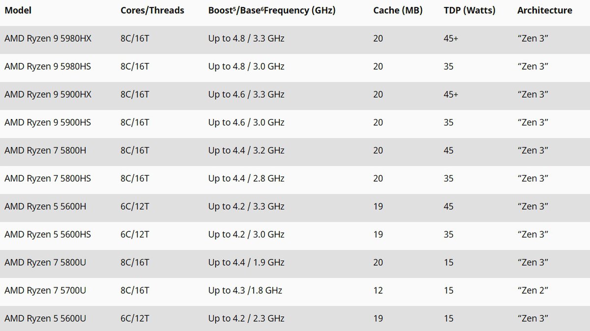 После завершения презентации AMD выпустила пресс-релиз, где перечислены 11 мобильных процессоров на базе архитектуры Zen 3.