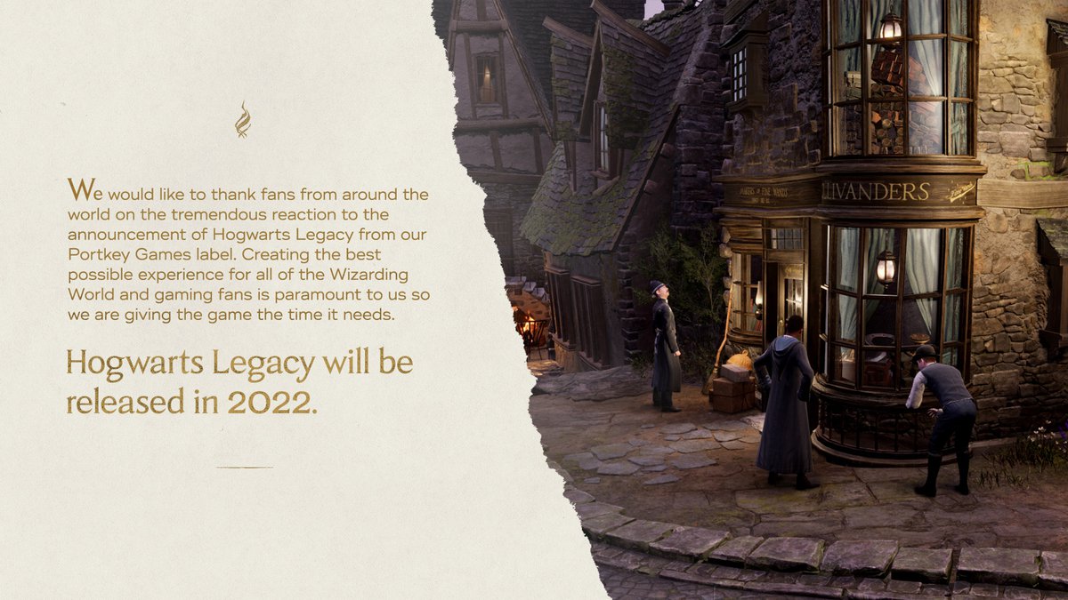Hogwarts Legacy, ролевой приключенческий экшен во вселенной Гарри Поттера, не выйдет в 2021 году. Игру отложили на год, сообщается в совместном заявлении Portkey Games и Warner Bros. Interactive Entertainment.