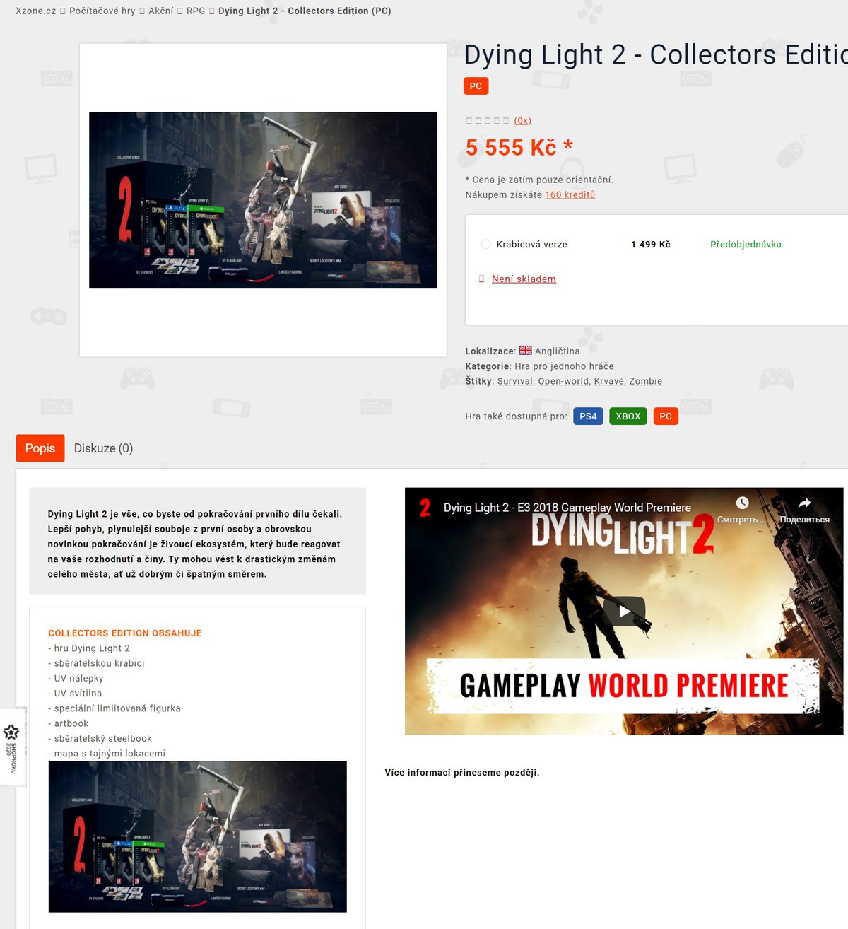 Коллекционка обойдется в 5555 чешских крон, это примерно 19 тысяч рублей. Можно предположить, что появление страницы коллекционного издания означает подготовку к полноценному анонсу Dying Light 2 и началу приему предзаказов.