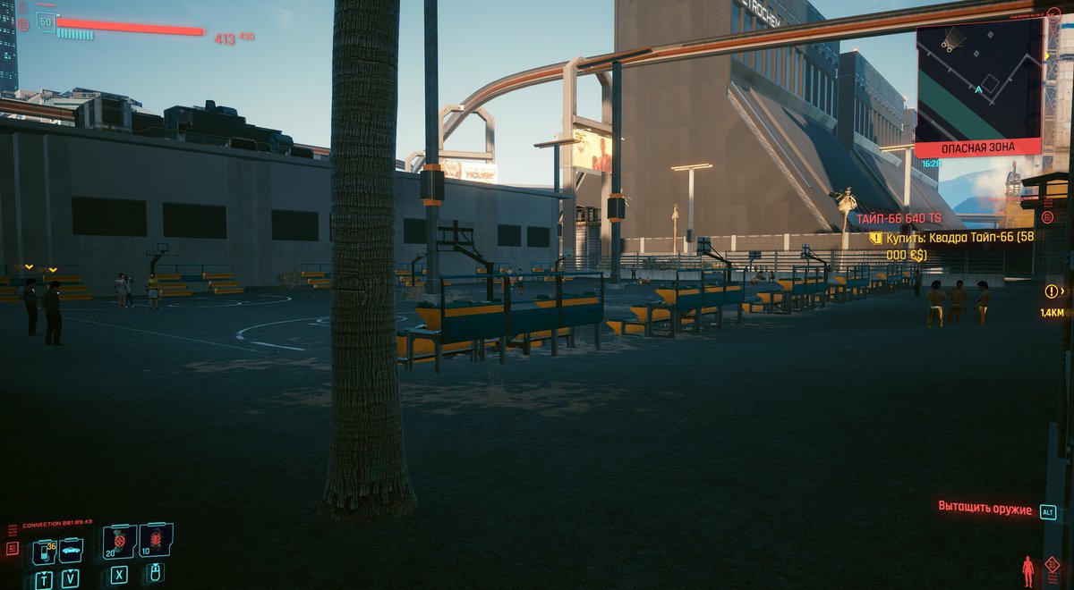 В принципе, это логично: игроки не попадут в тюрьму вообще никогда, странно, что за забором есть хоть какие-то объекты. На Найт-Сити постепенно опускалась ночь, наш Ви позевывал и мечтал о кофе. Но вдруг произошло нечто интересное.
