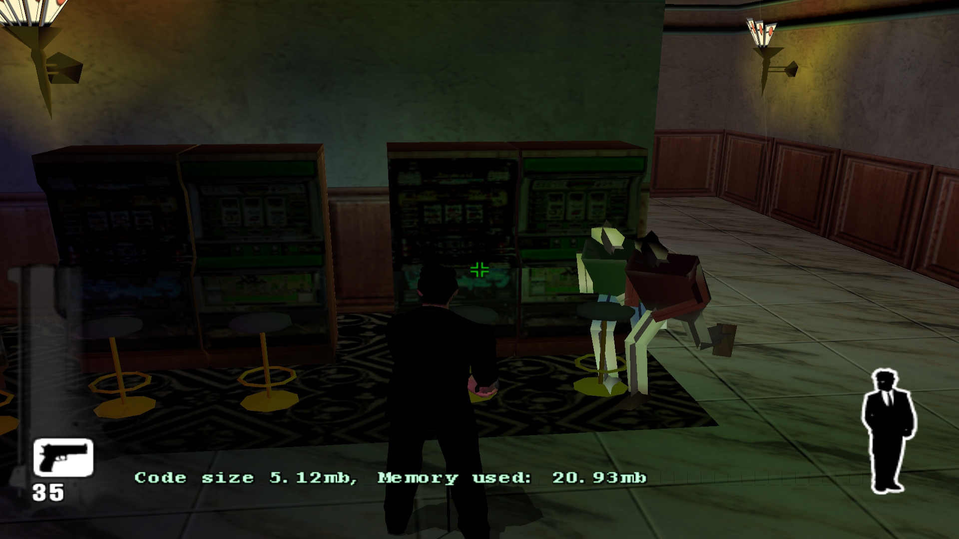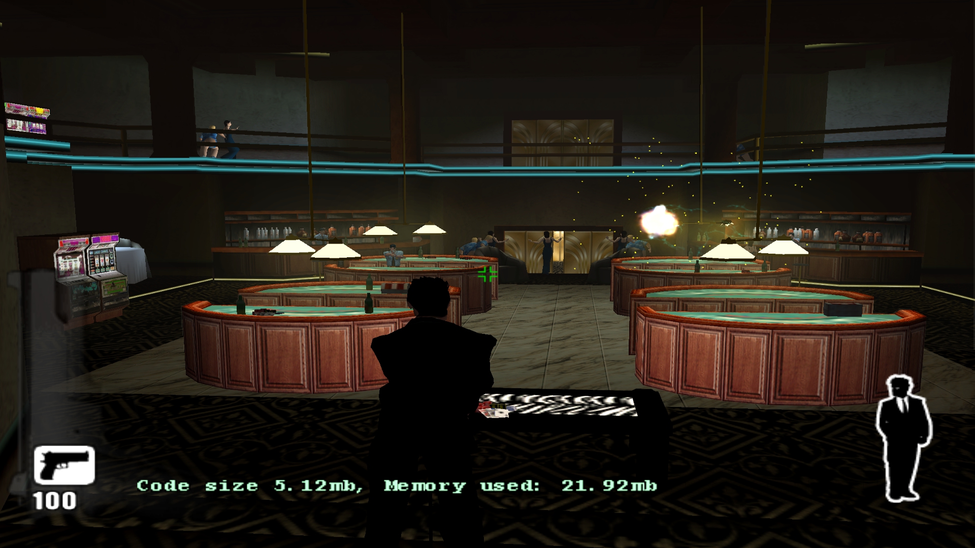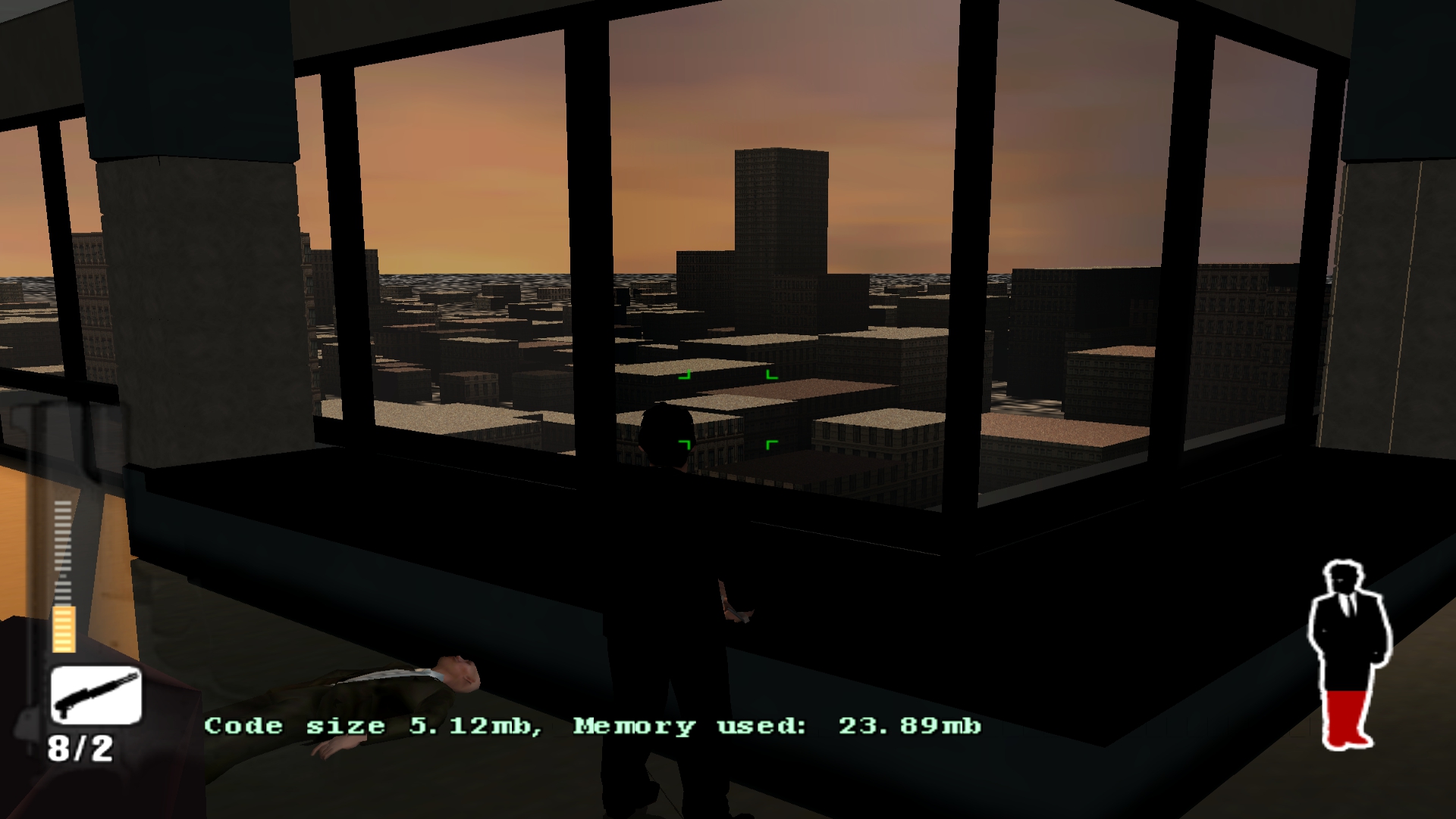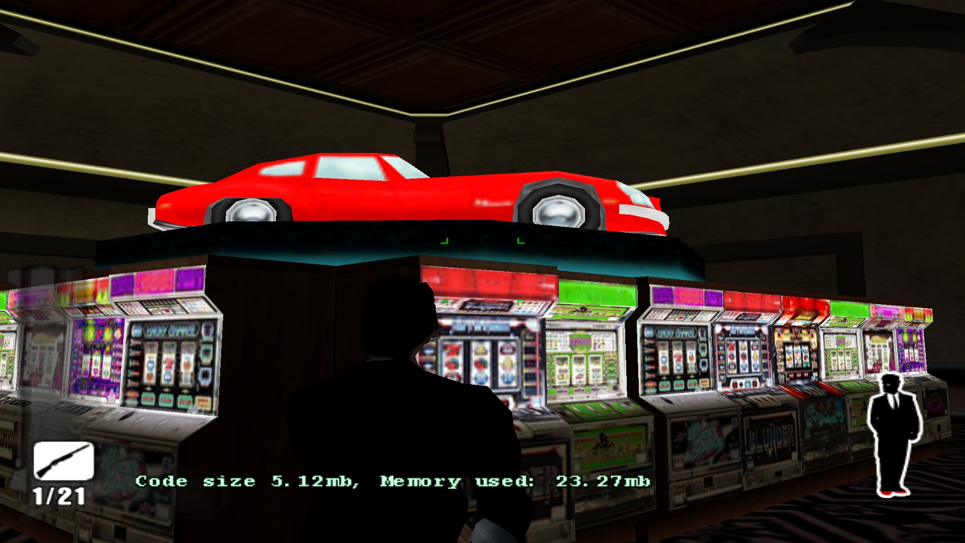 Честным путём пройти данную демо-версию нельзя, необходимо использовать отладочное меню. Но даже с этой хитростью игру растянуть не выйдет, всё заканчивается на верхних этажах здания, в котором находилось казино. Враг убегает в лифт и всё, для нас это конец.