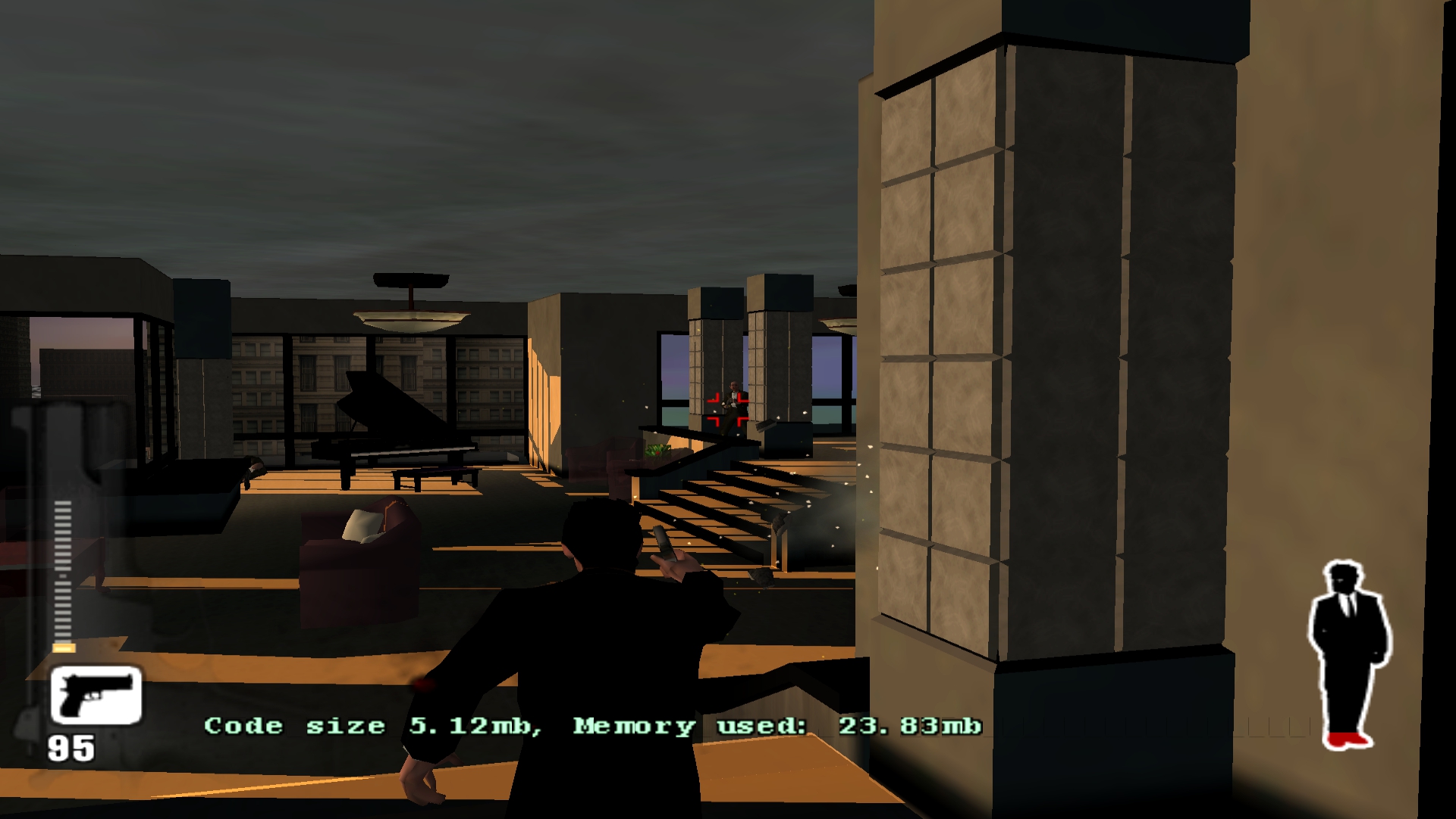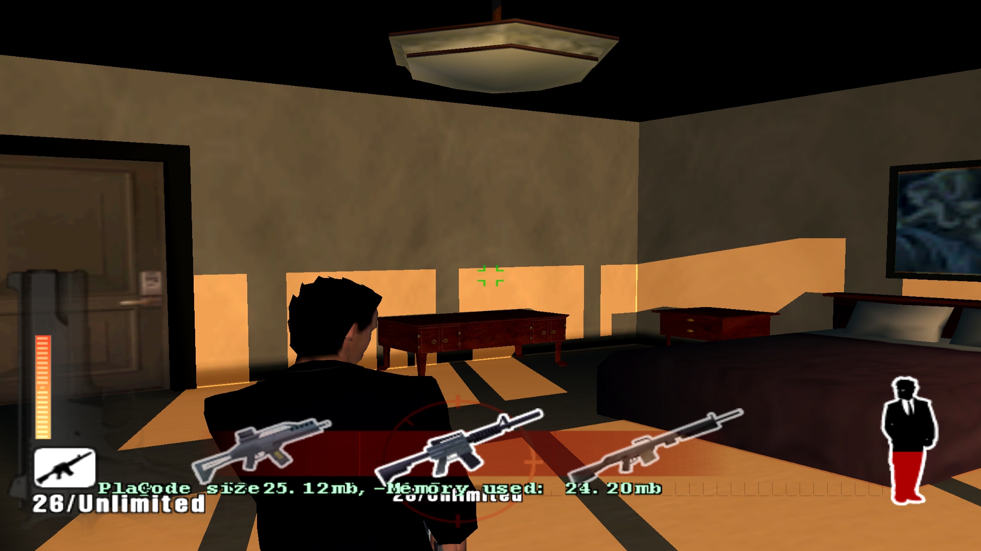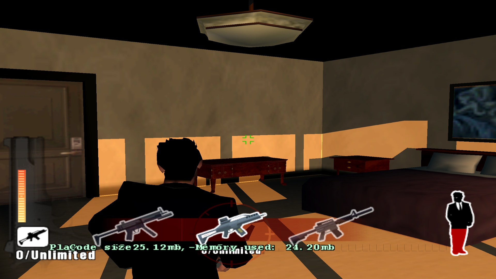Честным путём пройти данную демо-версию нельзя, необходимо использовать отладочное меню. Но даже с этой хитростью игру растянуть не выйдет, всё заканчивается на верхних этажах здания, в котором находилось казино. Враг убегает в лифт и всё, для нас это конец.