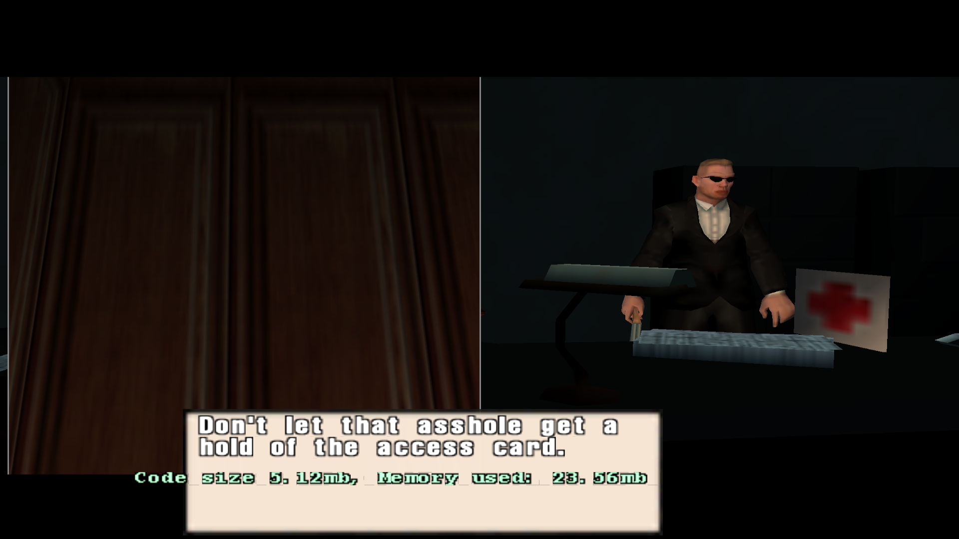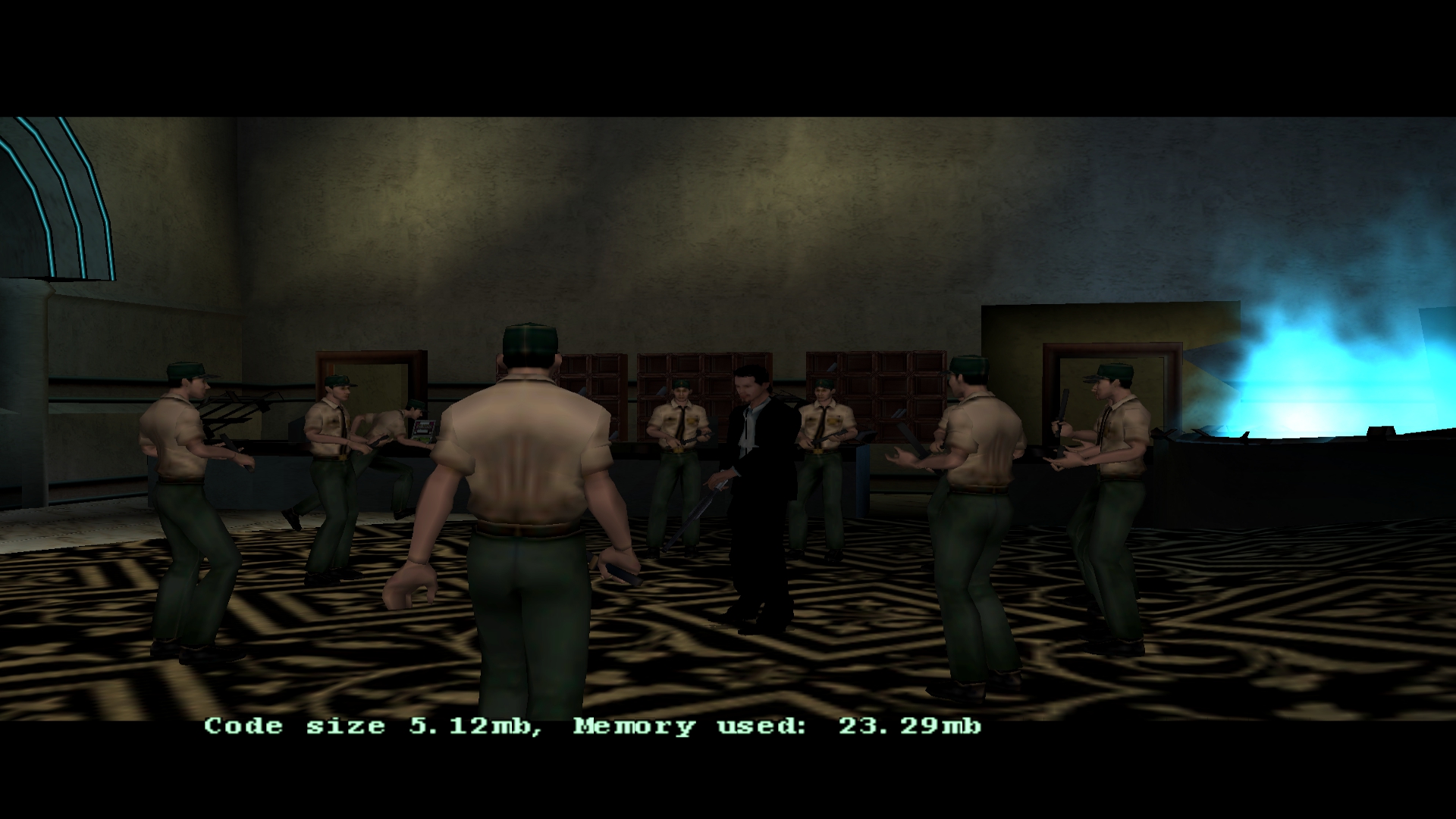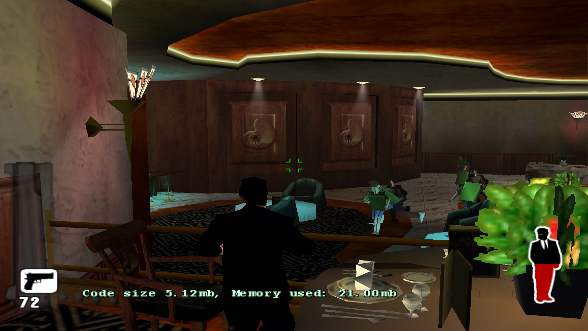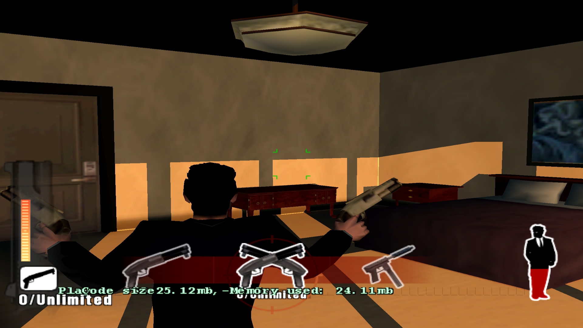 Честным путём пройти данную демо-версию нельзя, необходимо использовать отладочное меню. Но даже с этой хитростью игру растянуть не выйдет, всё заканчивается на верхних этажах здания, в котором находилось казино. Враг убегает в лифт и всё, для нас это конец.