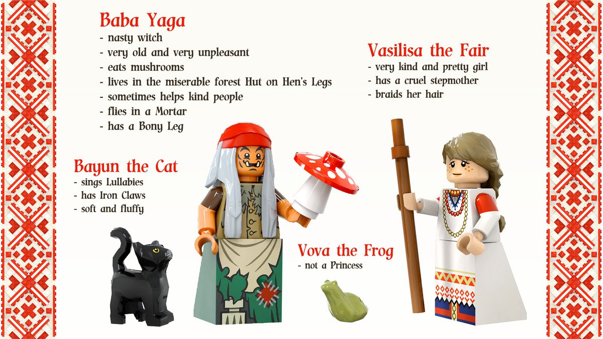 Российский художник Артем Бизяев предложил компании LEGO выпустить набор в стиле русских народных сказок — с Бабой Ягой и избушкой на курьих ножках. Для этого Артем разработал примерный дизайн такого набор и запостил его на LEGO Ideas.