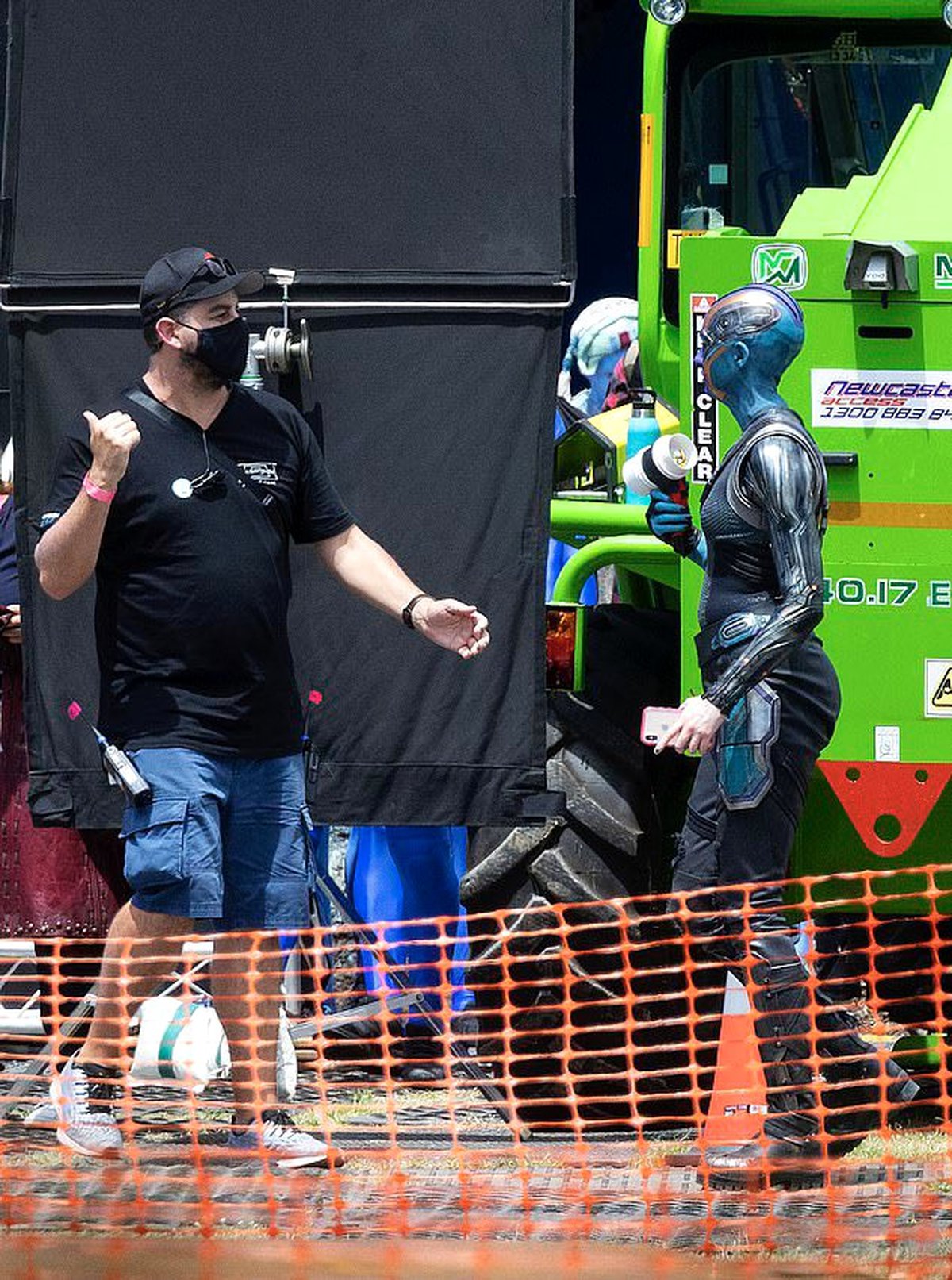 Помимо Криса Хемсворта в кадр попали Крис Пратт (Звездный Лорд), Карен Гиллан (Небула) и Шон Ганн. Теперь Краглин, один из персонажей Ганна, носит на голове устройство, напоминающее часть экипировки Йонду.
