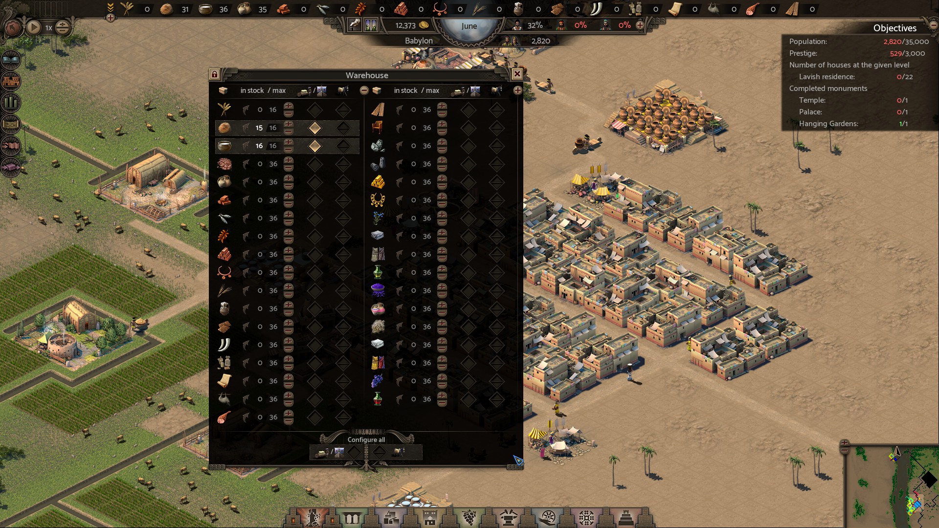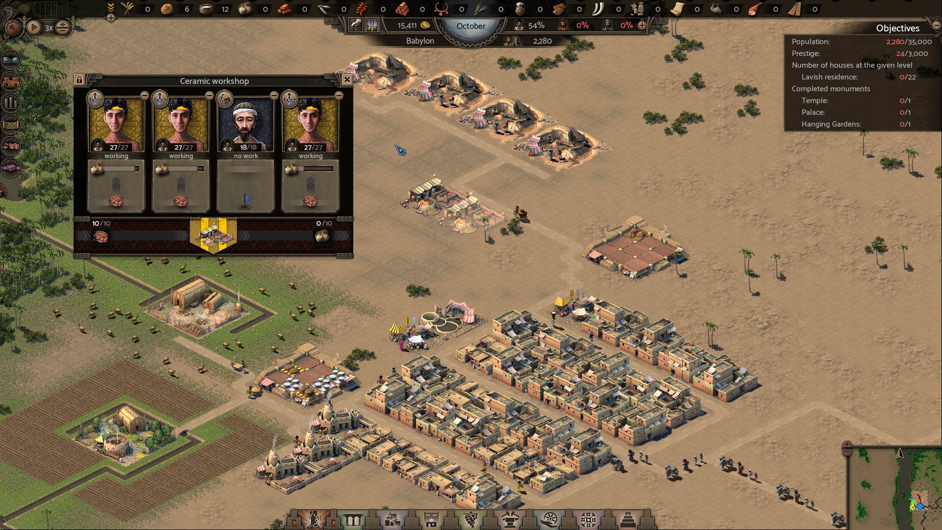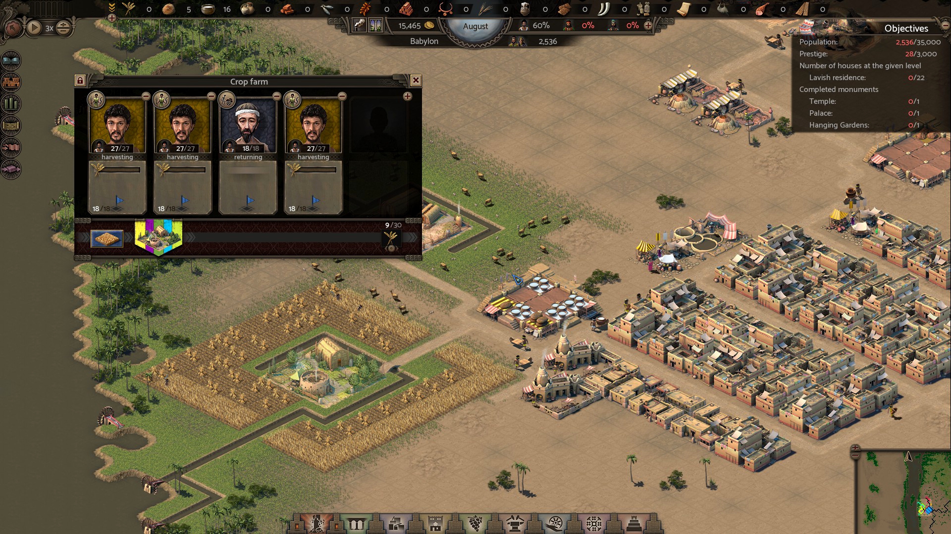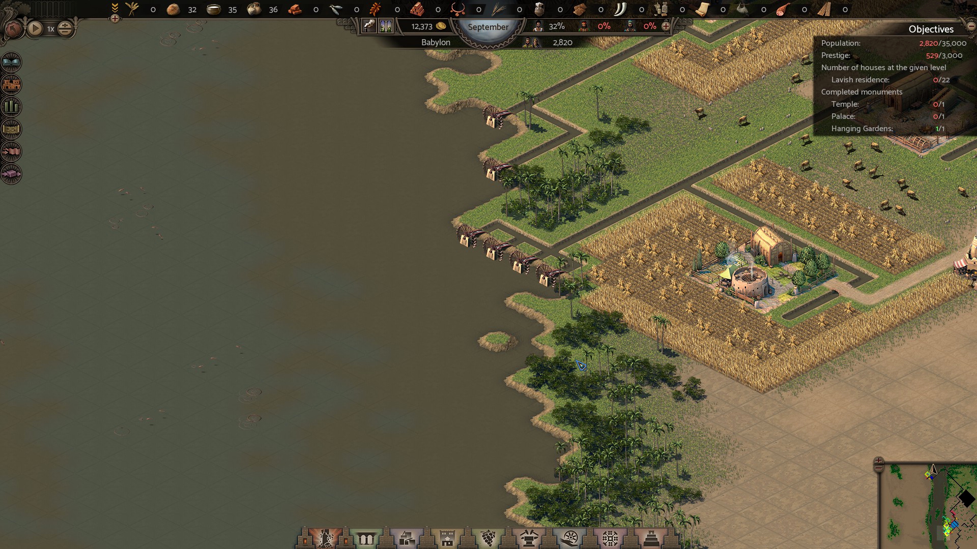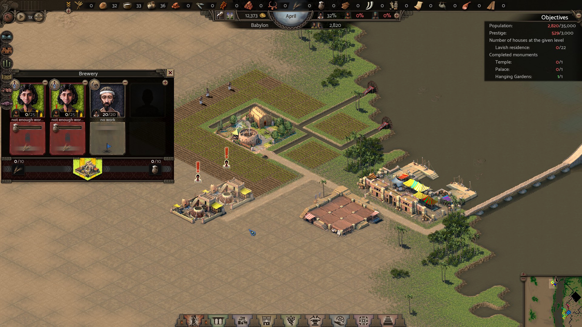 Сразу хочется начать с козырей. Какой по-вашему главный ресурс в экономических стратегиях? Вы скажете - деньги, за же всё строится. Несомненно, золото важно, но в Nebuchadnezzar игрок является скорее архитектором, чем правителем, поэтому монетки не тратятся на зарплаты рабочим и содержание зданий. Вместе с тем, правда, и налогов он никаких не собирает.