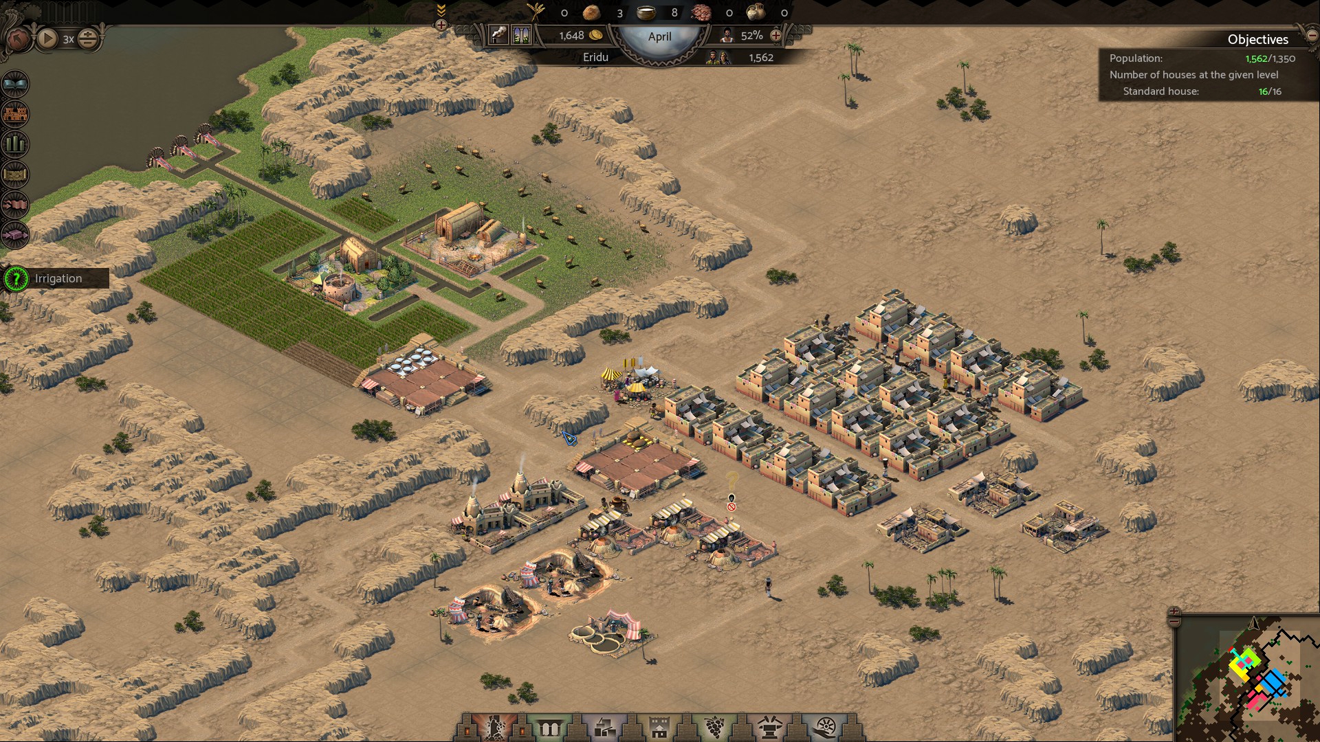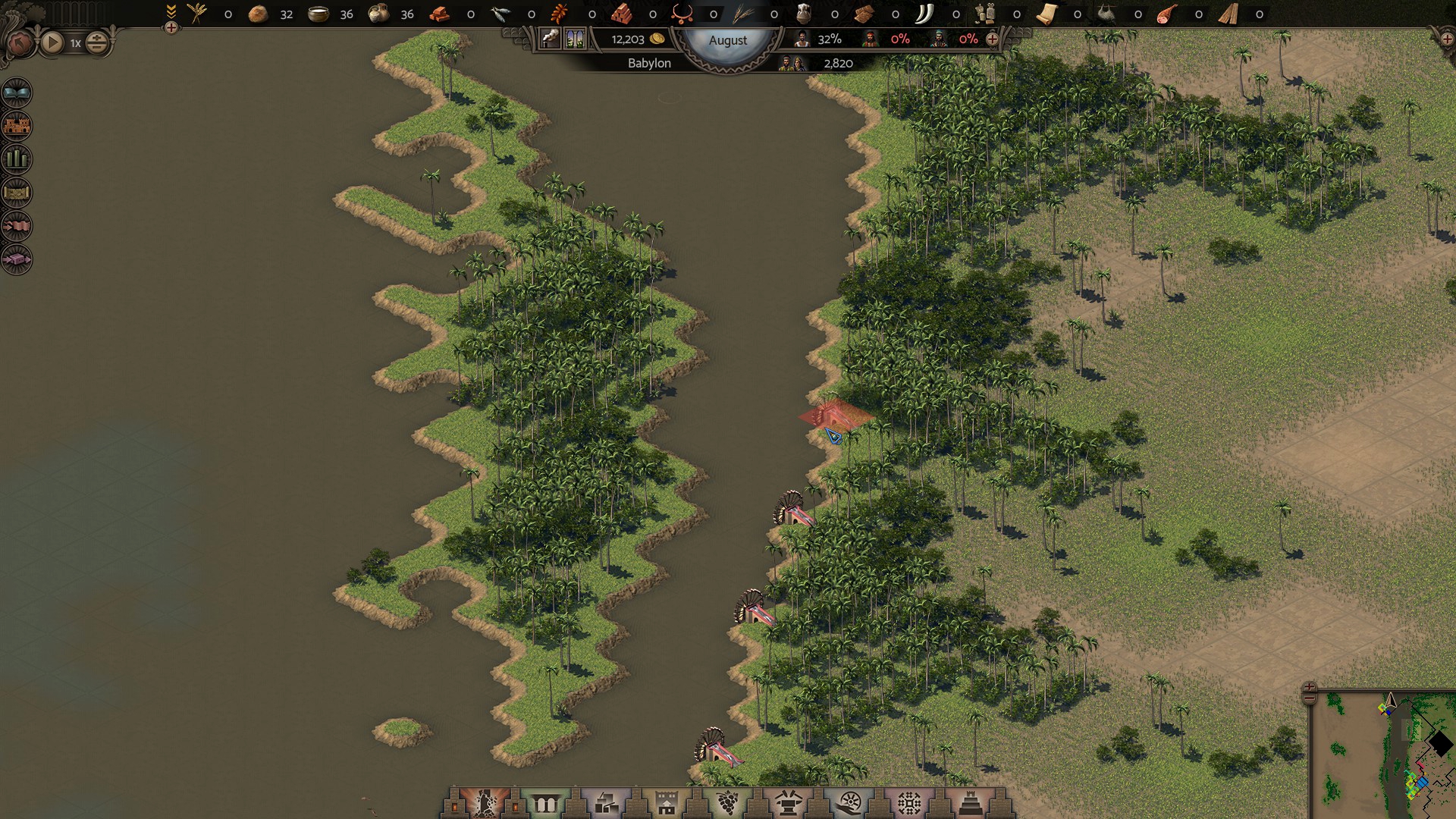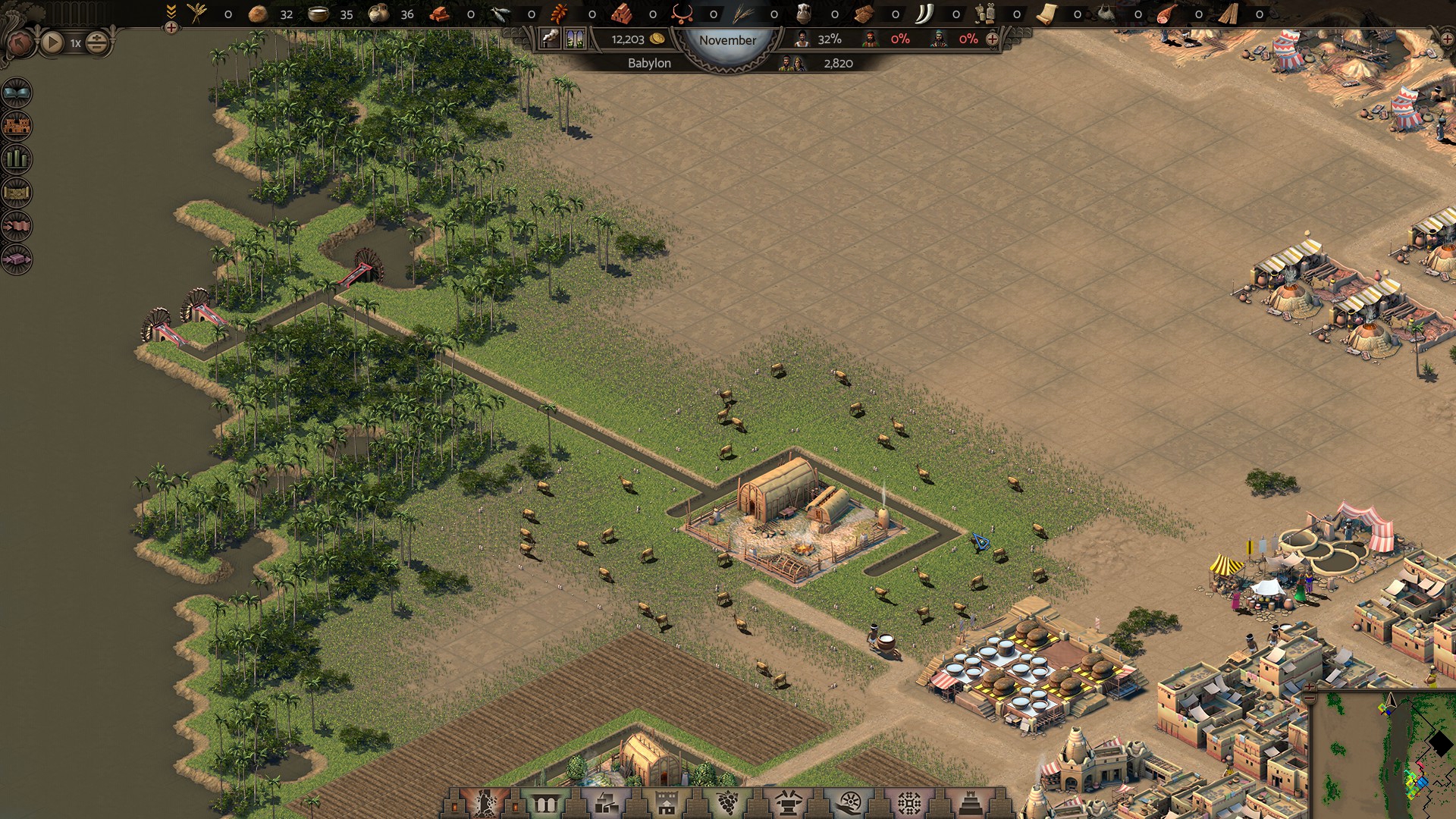 Связано это в первую очередь с сельским хозяйством и логистикой. На большинстве локаций даже берега Тигра и Евфрата пустынные. Для земледелия и скотоводства нужна ирригация, вот только насосы ставятся лишь на ровных берегах. Плюс их мощность, т.е. дальность наполнения каналов, ограничена, и для одной фермы потребуется от 2 до 3 штук.