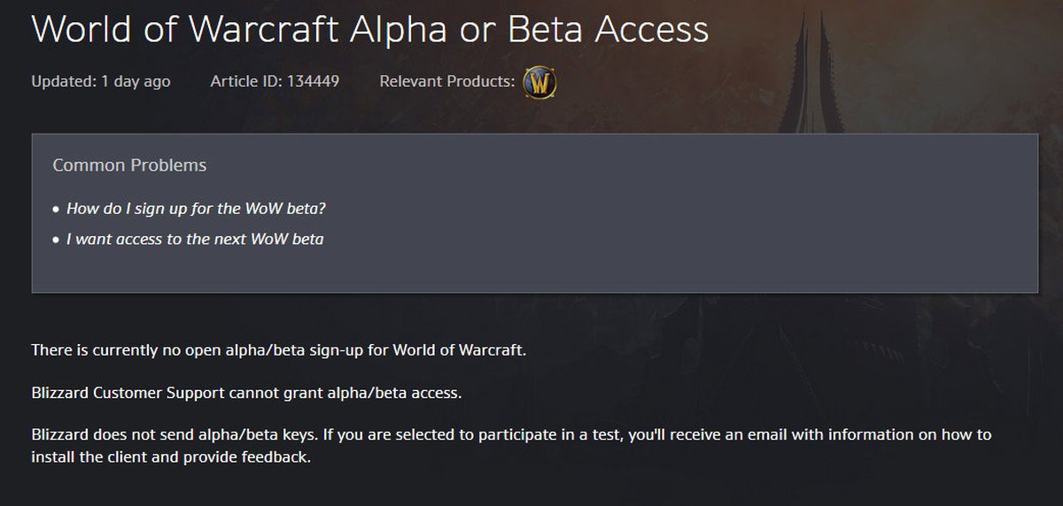 За несколько дней до начала фестиваля BlizzCon на сайте техподдержки Blizzard начали обновляться данные о бета-версиях игр. Сейчас, заметили в BlizzPlanet, обновились бета-страницы трех игр.
