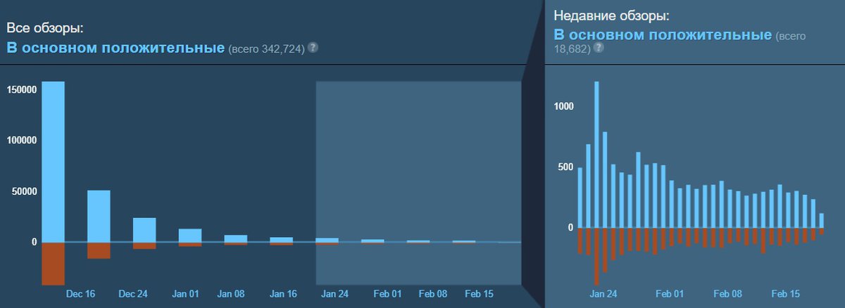 21 января на один отрицательный отзыв приходилось 2.38 положительных. 24 января, в день выхода патча, соотношение выросло до 2.56, но уже на следующий день упало до 2.18. Сейчас оно постепенно возвращается к допатчевому.