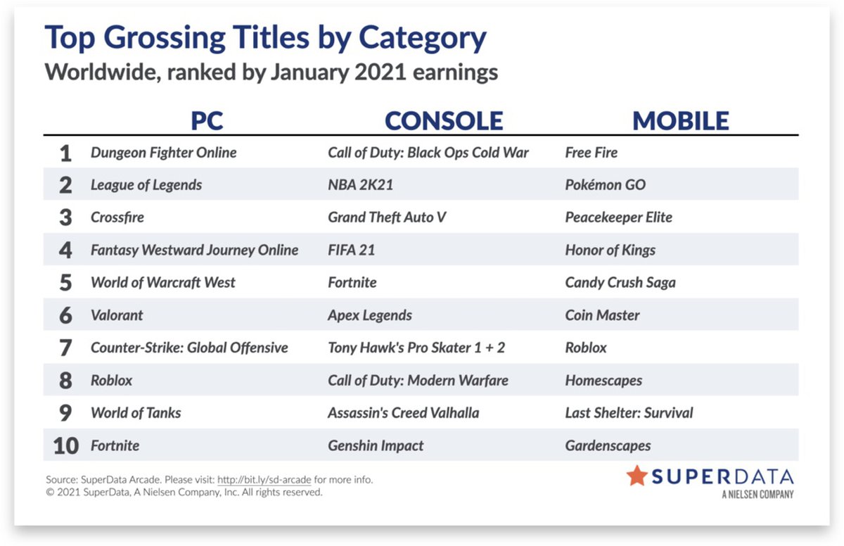 В январе 2021 года аналитики SuperData Research оценивают объем цифрового рынка игр в $11.6 миллиарда, на 15% больше, чем год назад. Сильнее всего выросла выручка игр для PC (+31%), игры для консолей на втором месте (+24%).