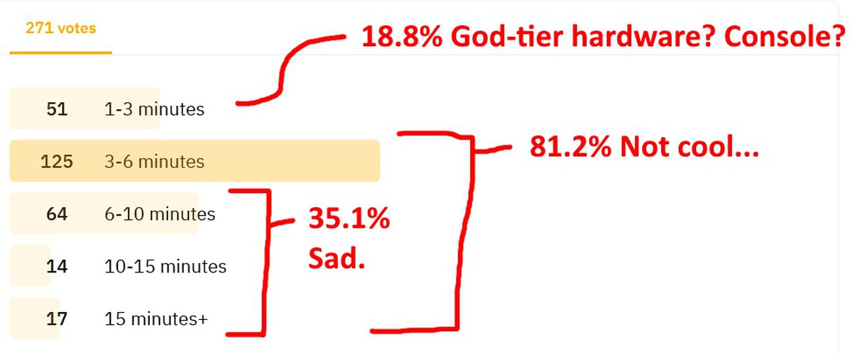 Проведя несколько экспериментов, t0st выяснил, что на его PC (AMD FX-8350, SSD-накопитель Kingston и 16 гигабайт DDR3) одиночная кампания грузится 70 секунд, а мультиплеер — в среднем 360 секунд. Опросы среди фанатов показывали, что может быть и хуже.