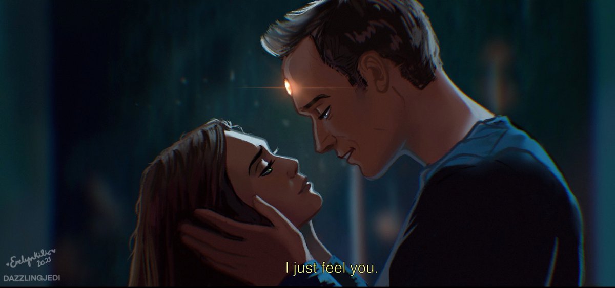 Получилась мини-история любви главных героев: от полноценного знакомства на базе Мстителей до прощания в штаб-квартире М.Е.Ч. Одновременно арты стали своеобразным трибьютом восьмого эпизода сериала — как минимум две из трех сцен взяты из этой серии.