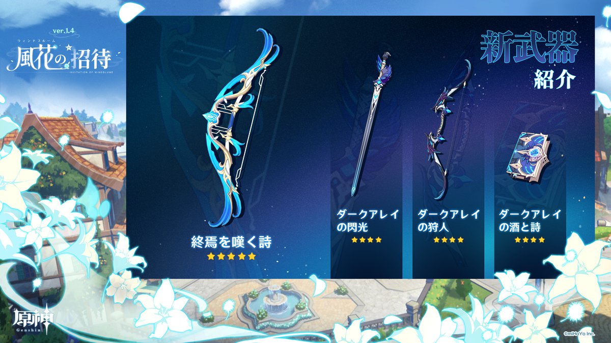 Появится новое оружие: пятизвездный лук, а также четырехзвездные меч, лук и катализатор.