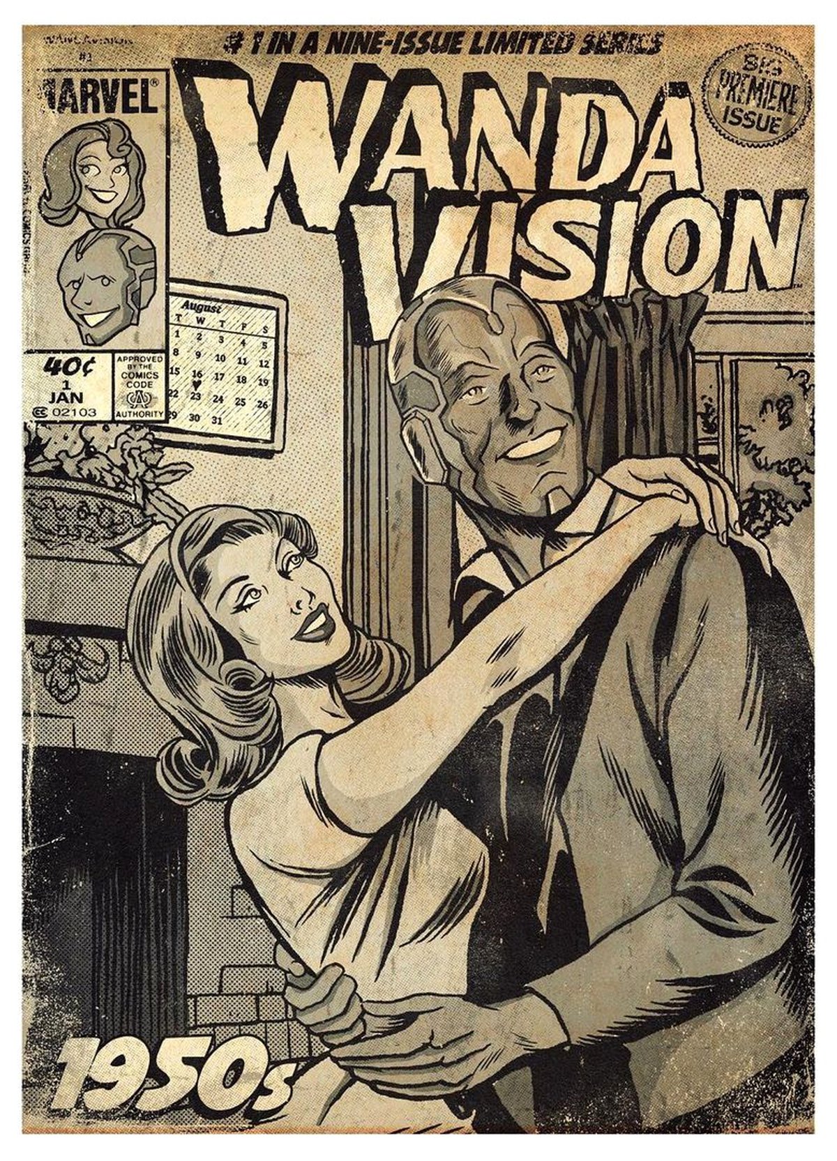 Российский художник Вадим Двоеглазов продолжает рисовать комикс-версии популярных фильмов и сериалов. В прошлый раз мы встречались с ним в декабре, когда Вадим создал серию обложек в стиле «Мандалорца». Теперь пришло время «Ванда/Вижн».