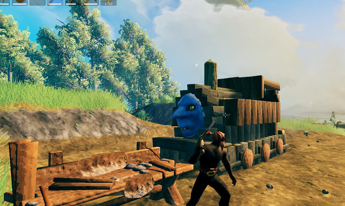 В Valheim смогли сделать Паровозика Томаса без модов — убив тролля и насадив его голову на палку