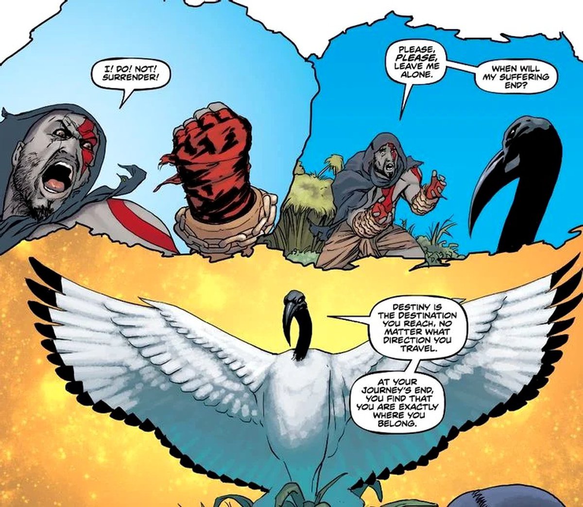В конце концов герой смиряется. После беседы с Тотом Кратос решает не противиться судьбе и встретиться с ней лицом к лицу. Как именно — видимо, узнаем в следующем выпуске комикса.