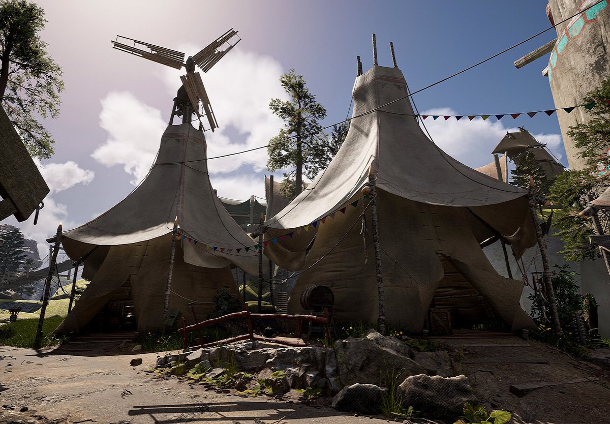При создании локаций применялись текстуры и материалы Quixel Megascan, созданные при помощи сканирования реальных объектов. Освещение не выставлялось специально под сцену: оно динамическое.