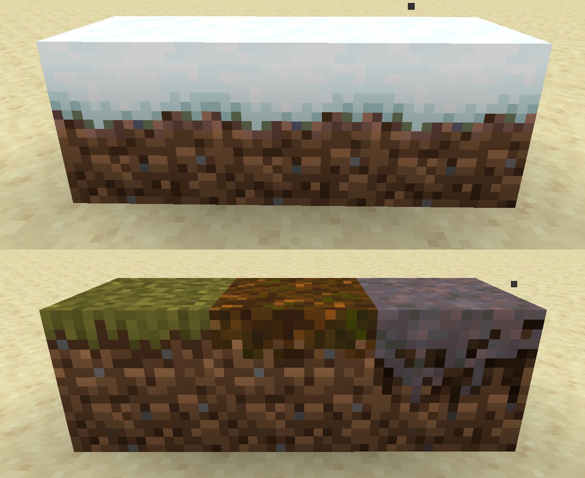Суть бага — в некорректной работе снега и некоторых блоков. Если снег покрывал блоки травы, земли или мицелия, то использовалась неверная текстура земли, по виду отличавшаяся от той, что была на стандартной версии блока.