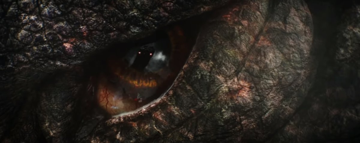 Главное здесь — отражение в глазе у кайдзю. Похоже, считают фанаты, в какой-то момент Годзилла встретится с Мехагодзиллой, мелькавшей в первом трейлере.