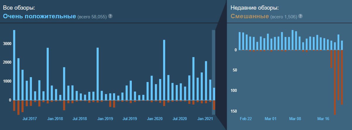За последние 30 дней NieR Automata получила только 66% положительных отзывов в Steam. Негативных отзывов очень много, а положительных — мало, поэтому с каждым днем соотношение будет меняться все сильнее.