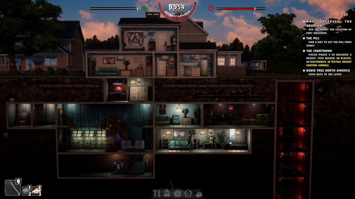 Но все немного хитрее. К примеру, для строительства бункера нужны ресурсы; их можно получить, разобрав что-то из домашней утвари, но есть нюанс: когда в гости заявится правительственный агент, его надо будет убедить, что ничего незаконного тут не происходит. И отсутствие дома привычных вещей агент наверняка заметит.