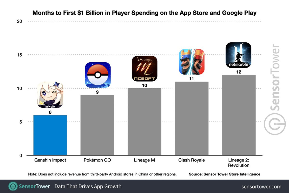 Прежним рекордсменом был Pokemon Go, заработавший миллиард примерно за 9 месяцев. Genshin Impact генерирует выручку гораздо быстрее: только за пять месяцев релиза игра заработала $874 миллиона.