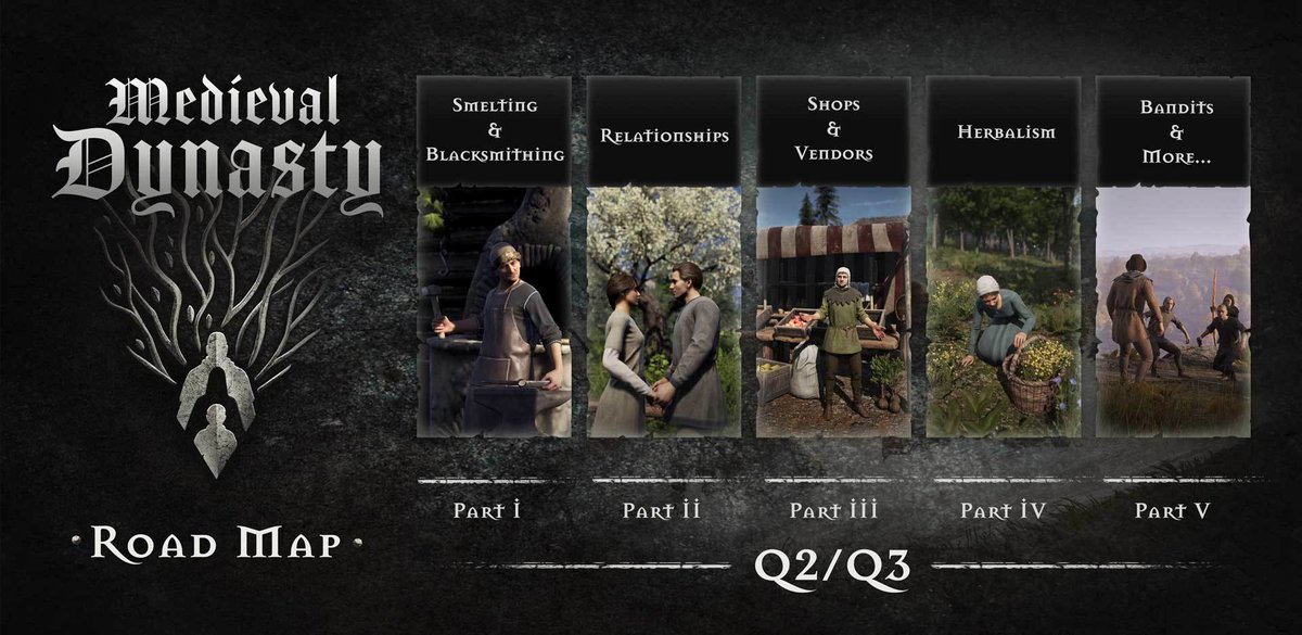 Разработчики Medieval Dynasty изменили расписание релиза крупных обновлений. Предполагалось, что до лета игроки получат патчи с отношениями, бандитами, травничеством и торговлей; некоторые из этих механик появятся позже.