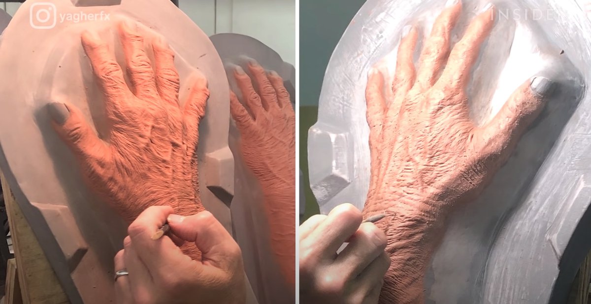 У силиконовых накладок есть преимущество: этот материал сам по себе умеет покрываться морщинами, делая искусственную кожу еще чуточку реалистичнее. Но его все равно требовалось доработать: нужно было добавить мелкие детали.