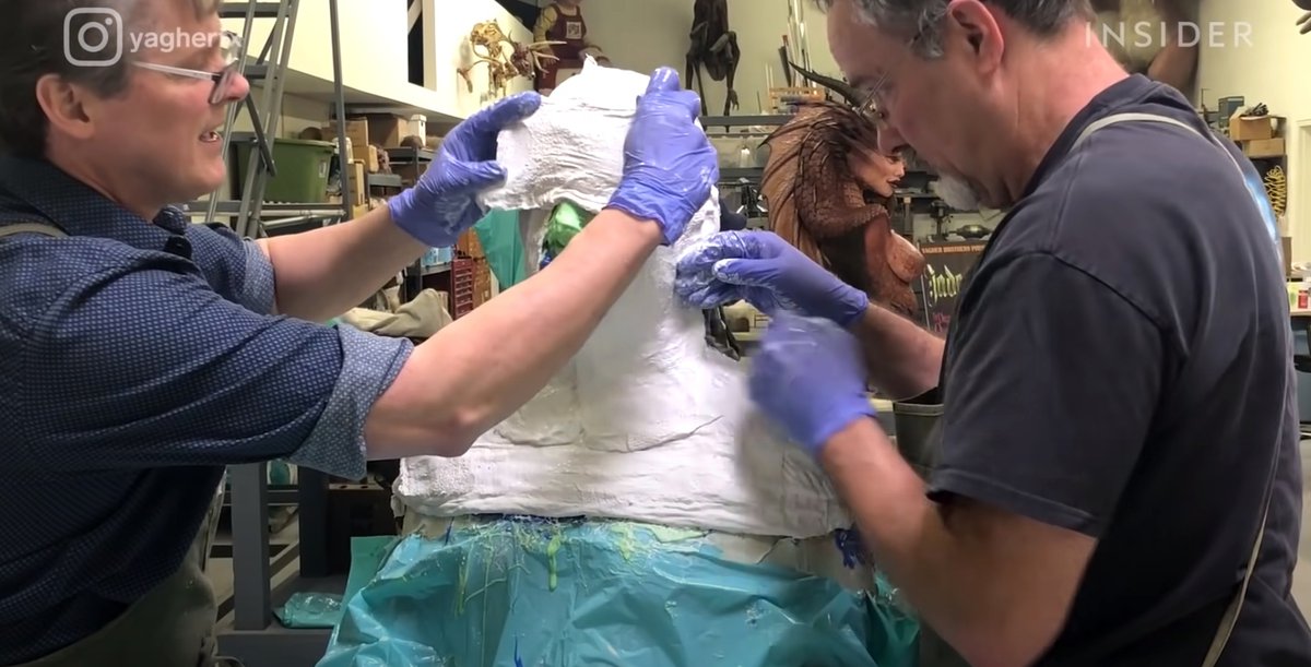 Сами лица моделируются следующим образом. По слепкам с лиц актеров Ягер и его ассистенты отливают бюсты в масштабе один к одному. По ним можно, во-первых, детально изучать внешность, не беспокоя актеров, а во-вторых — экспериментировать с их новыми лицами.
