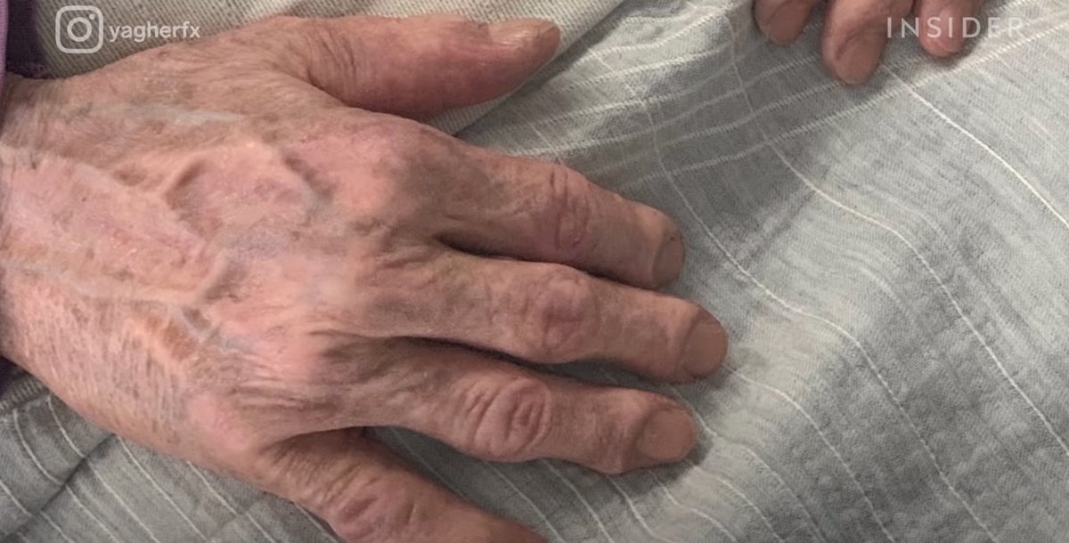 Силиконовые накладки прошли несколько стадий доработки. Во-первых, их дополнительно окрасили: Ягер и команда вручную придали силикону цвет старческой кожи со всеми ее пигментными пятнами.