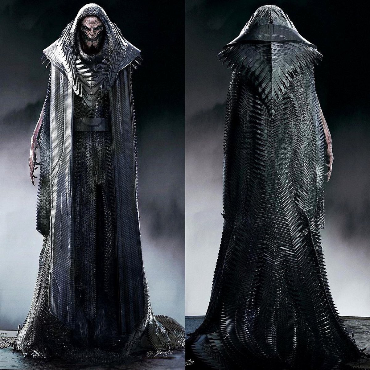 Так получился персонаж, изображенный на этих концептах; затем его продолжили дорабатывать. В частности, отмечает Маранц, костюмом ДеСаада занимался не он, а художник по костюмам Майкл Уилкинсон.