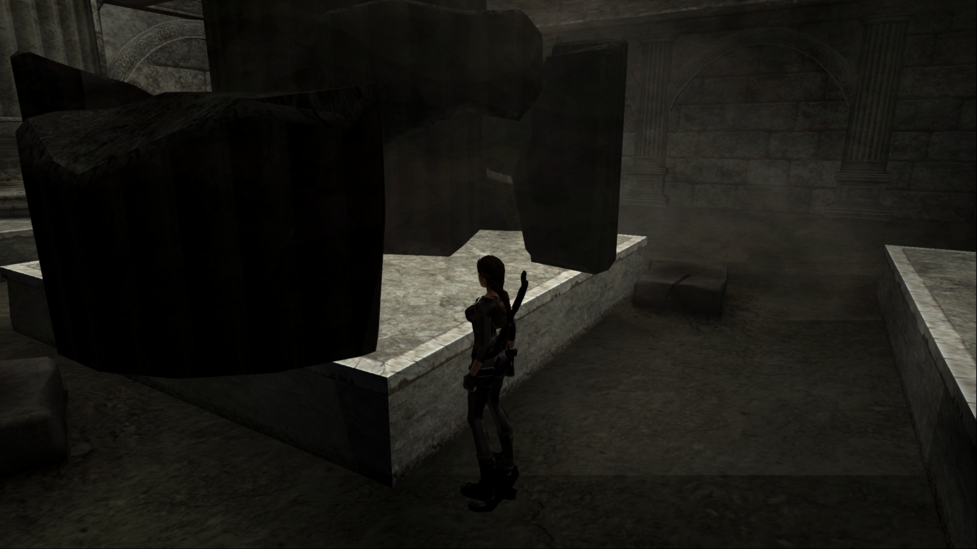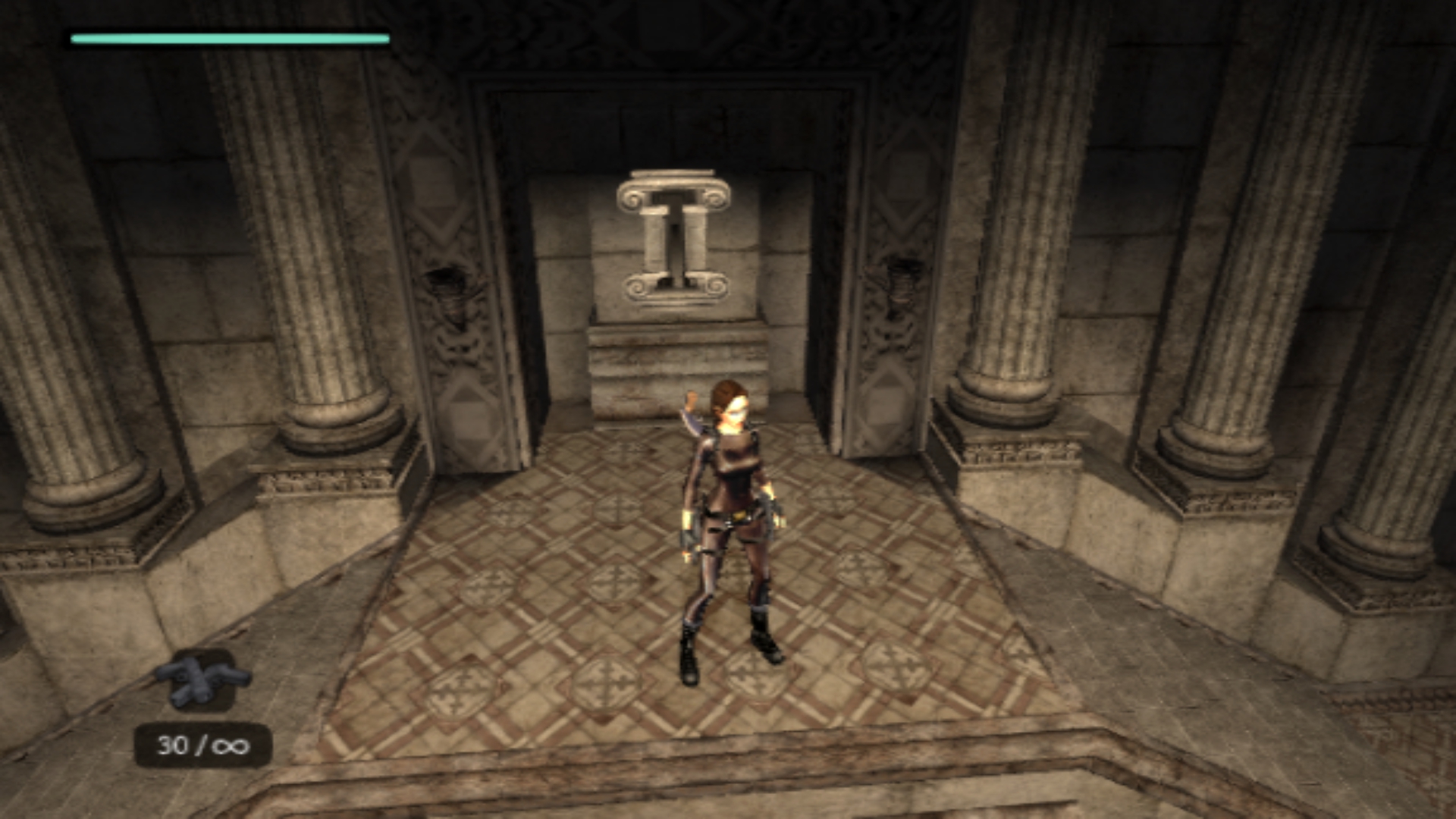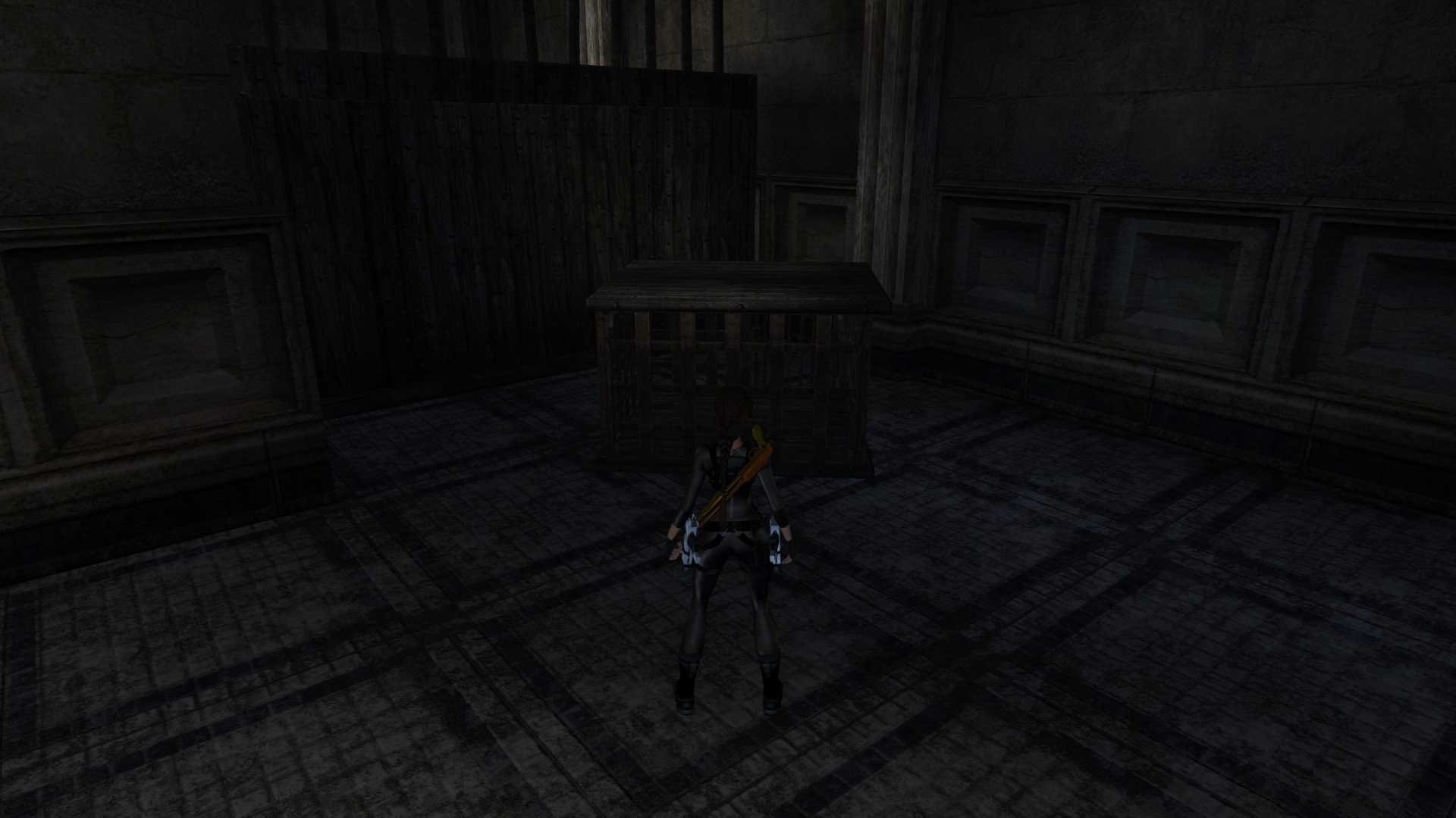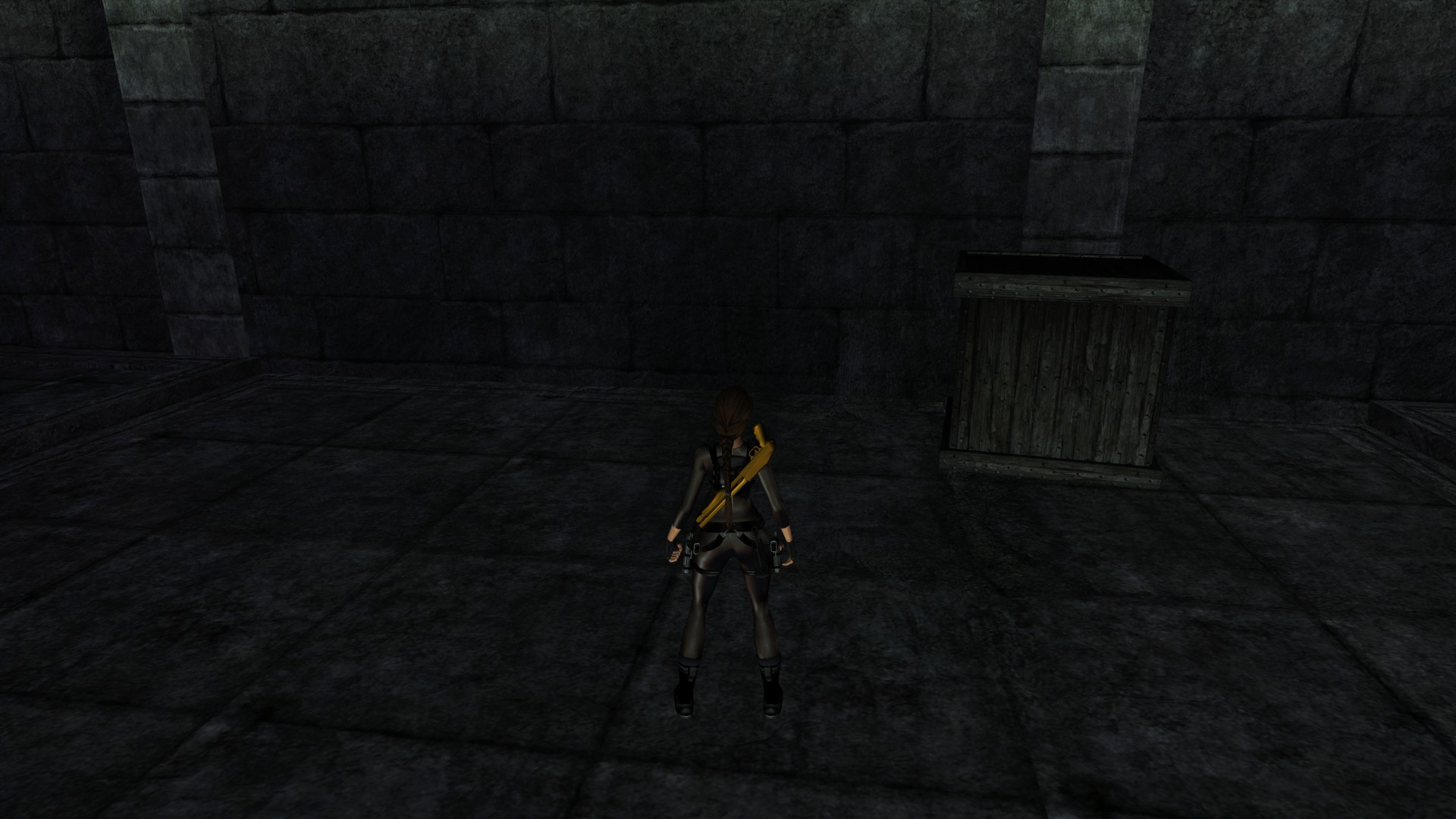 Итак, первым, куда я смог телепортироваться, оказалась тестовая комната, подобную которой можно найти в Tomb Raider: Legend. В этой комнате, на сей раз, есть кое-что интересное – вырезанное оружие. Всего на полу два оружия: дробовик и автомат. Напомню, что в числе оружий Лары только УЗИ были скорострельными.