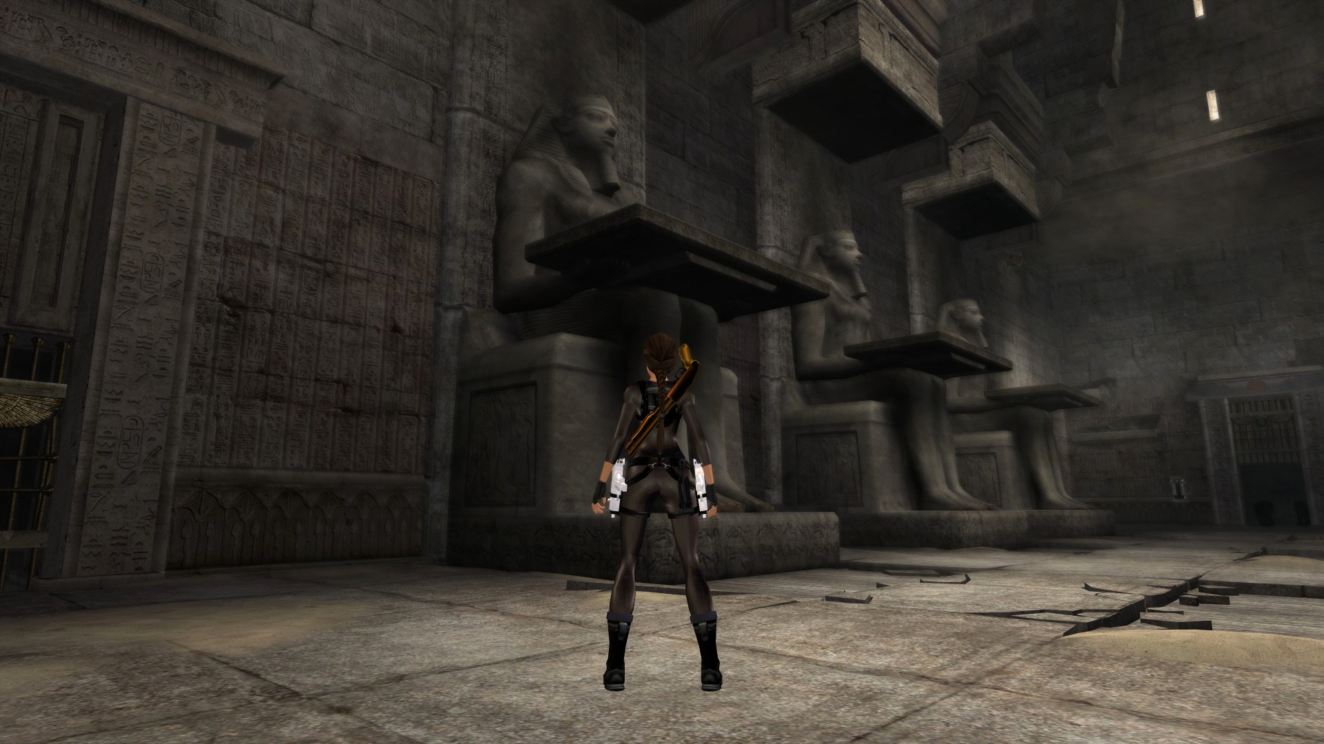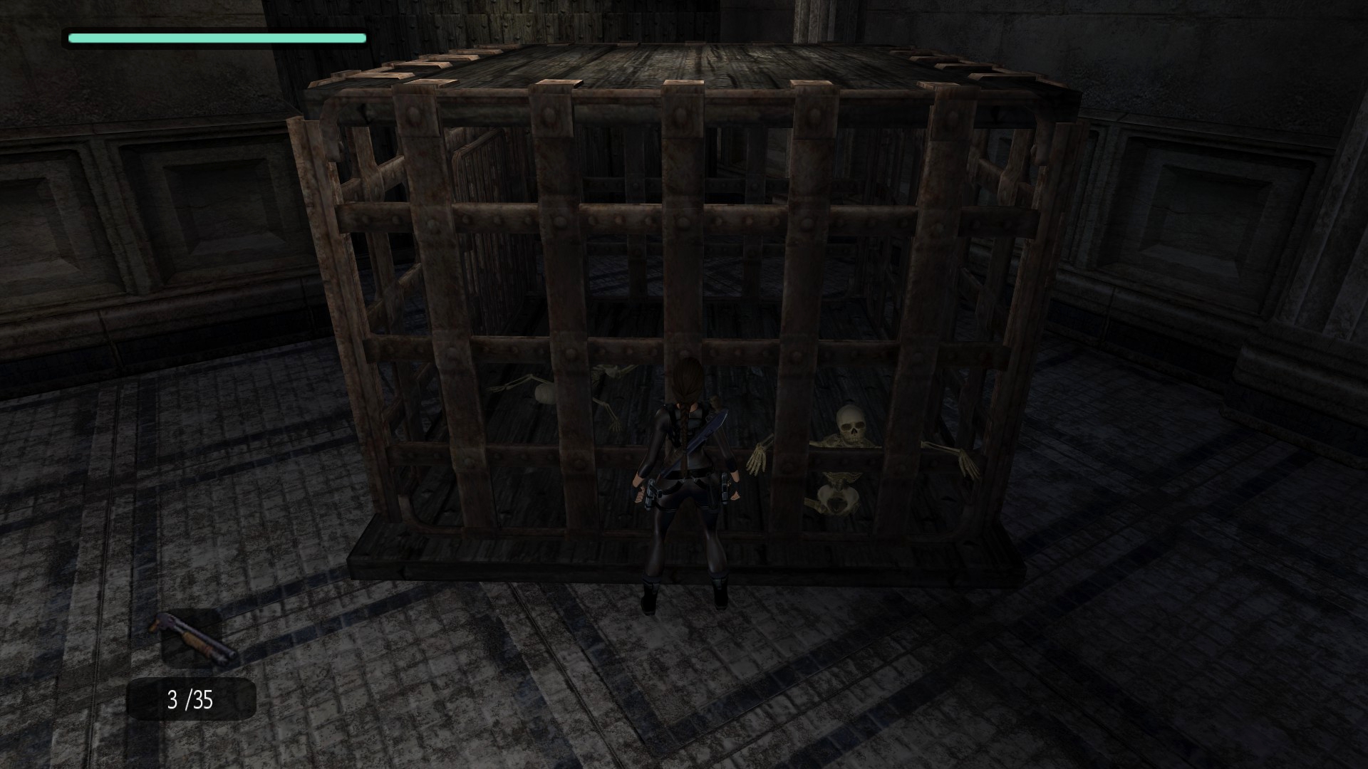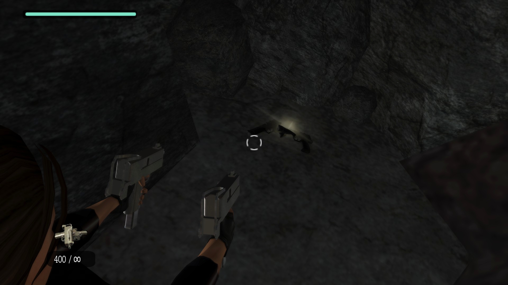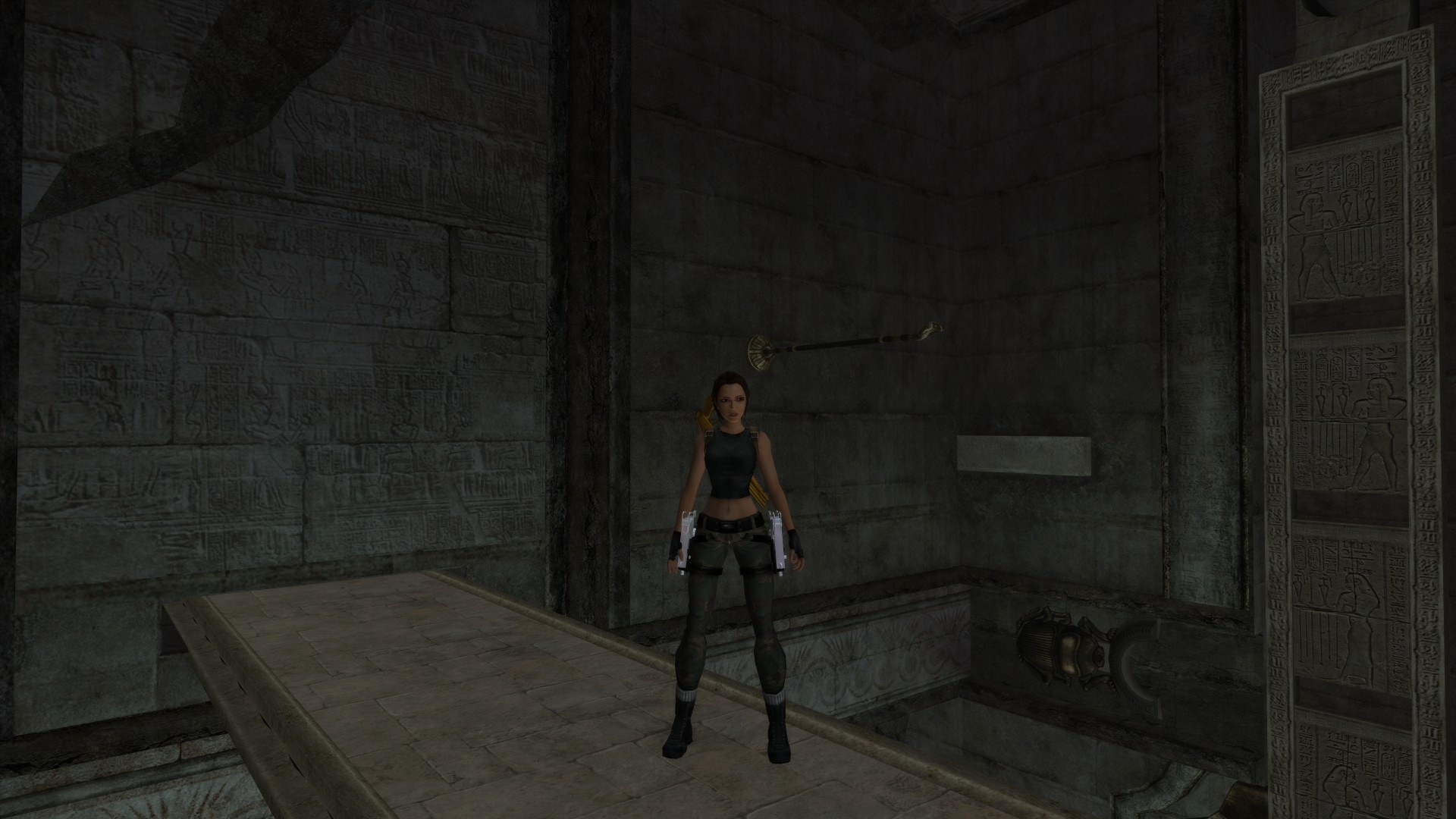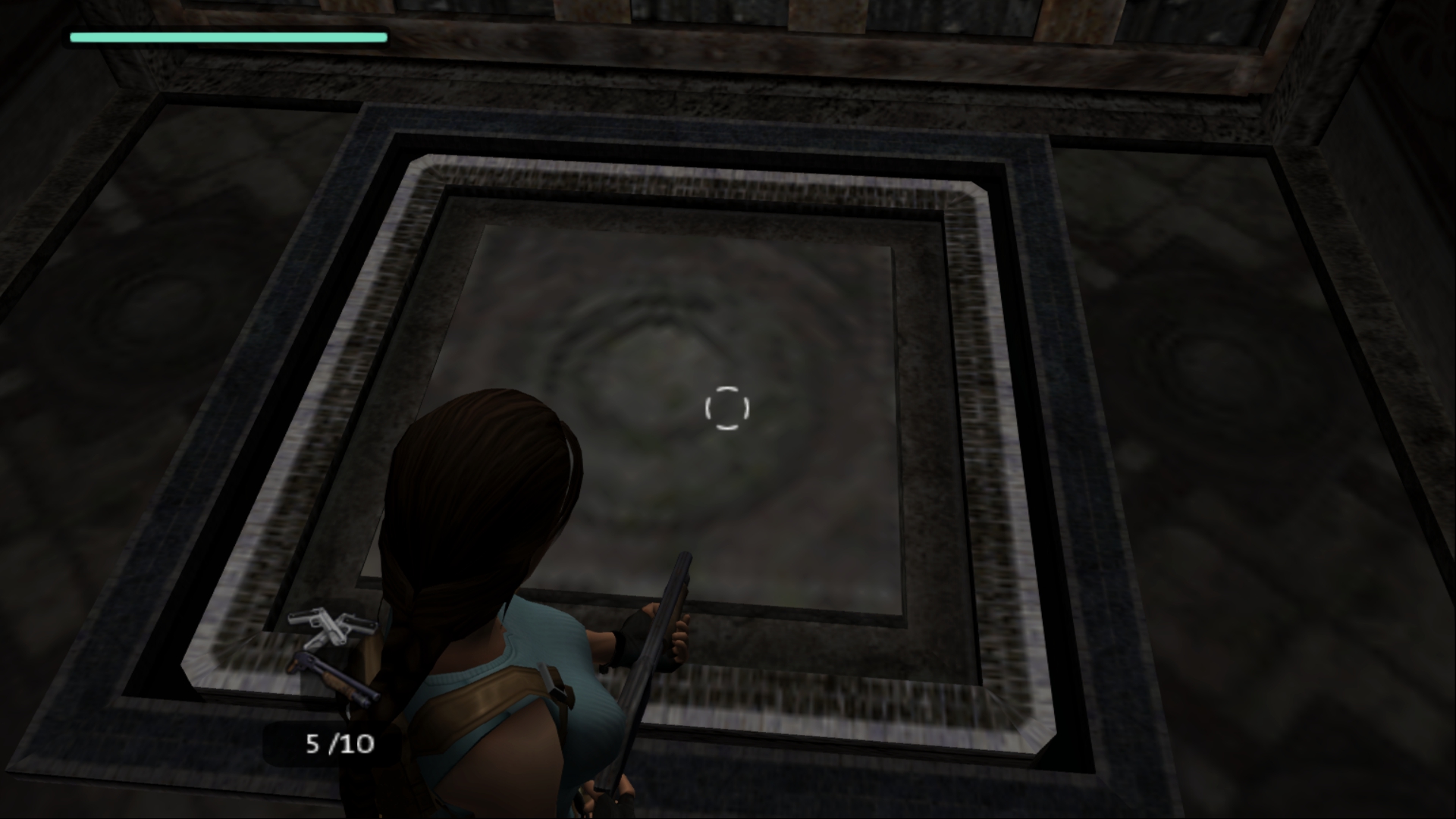 Итак, первым, куда я смог телепортироваться, оказалась тестовая комната, подобную которой можно найти в Tomb Raider: Legend. В этой комнате, на сей раз, есть кое-что интересное – вырезанное оружие. Всего на полу два оружия: дробовик и автомат. Напомню, что в числе оружий Лары только УЗИ были скорострельными.